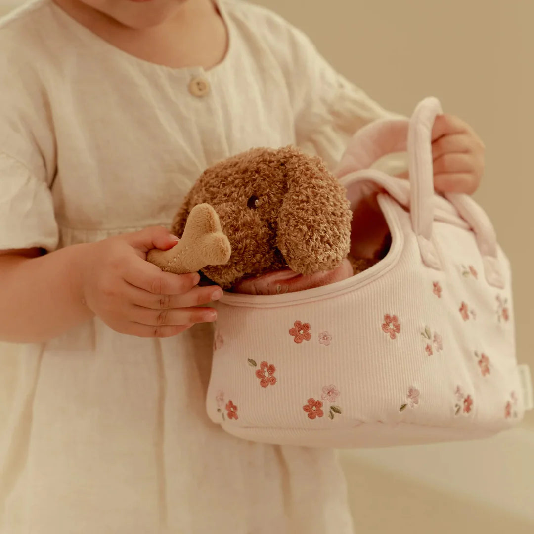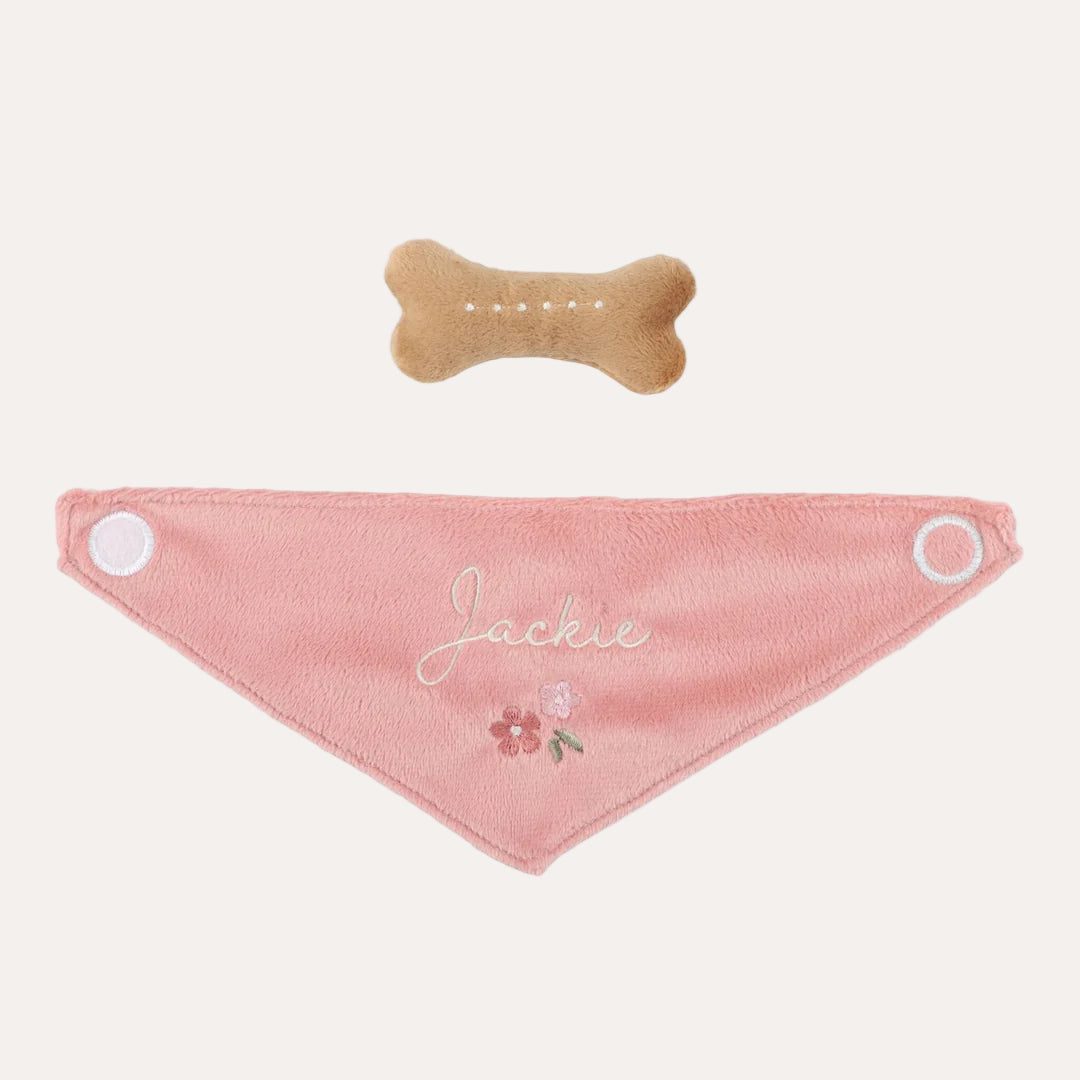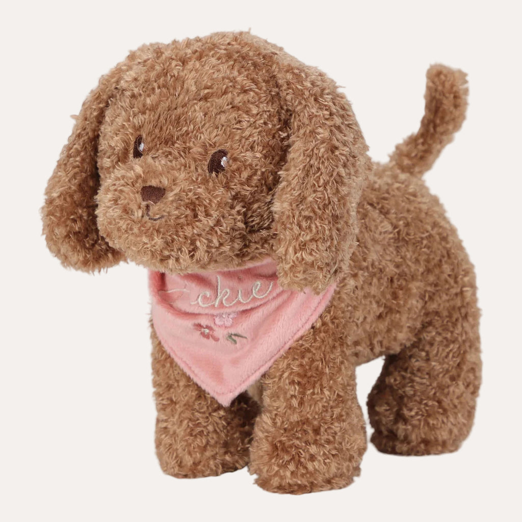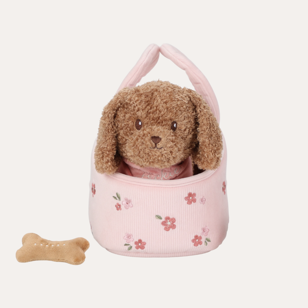Meet Jackie the Puppy, the soft and cuddly plush toy ready for endless adventures! This adorable companion comes with her own carrying bag, a fabric bone, and a charming pink bandana personalised with her name. Perfect for imaginative play, Jackie fits snugly in her bag, making her easy to bring along wherever your little one goes. Crafted from gentle, safe materials, she’s perfect for cuddles and gentle hands. Encourage role-play, fine motor skills, and creativity with Jackie—the perfect friend for playtime fun at home or on the move!