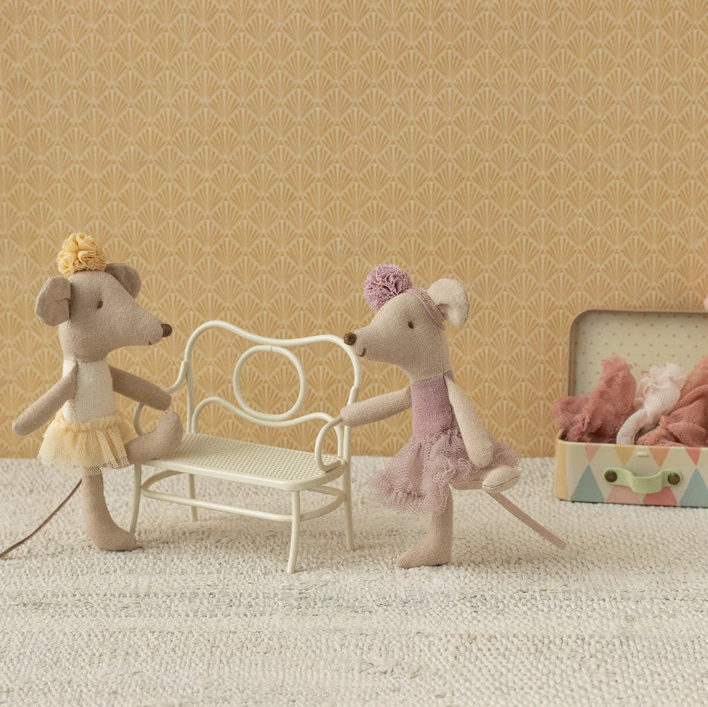 Meet the Ballerina Mouse, Little Sister, pirouetting into playtime in her enchanting heather tutu and delicate headband. This pint-sized dancer is ready to leap, twirl, and shimmy through endless imaginative adventures. Pair her with our collection of miniature furniture, costumes, and accessories to choreograph her own storybook ballet - from cosy bedroom scenes to grand stage performances. Her graceful pose and refined details make her the perfect companion for creative storytelling, whether she's rehearsing with her big sister or taking centre stage in your child's magical mouse world.