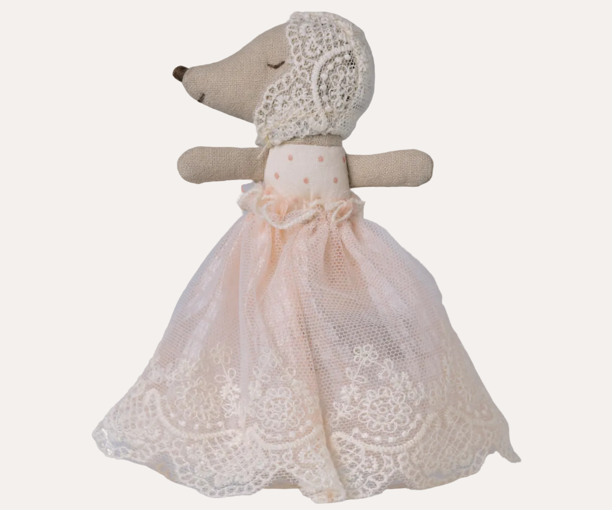 Meet our delightful Baby Mouse in Gown, dressed to impress in a powder-soft ensemble complete with an intricately detailed bonnet. This charming wooden figure is perfect for imaginative play, tea parties, and storytelling adventures. Pair with our matching mouse accessories—tiny teacups, miniature furniture, and coordinating outfits—to create an enchanting world where celebrations never end. A treasured keepsake that sparks joy and creativity in little ones.