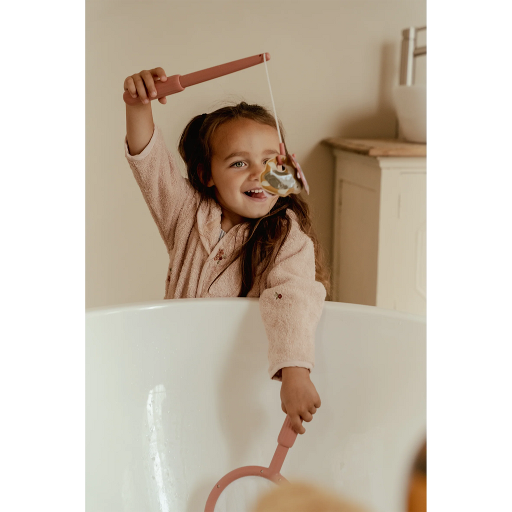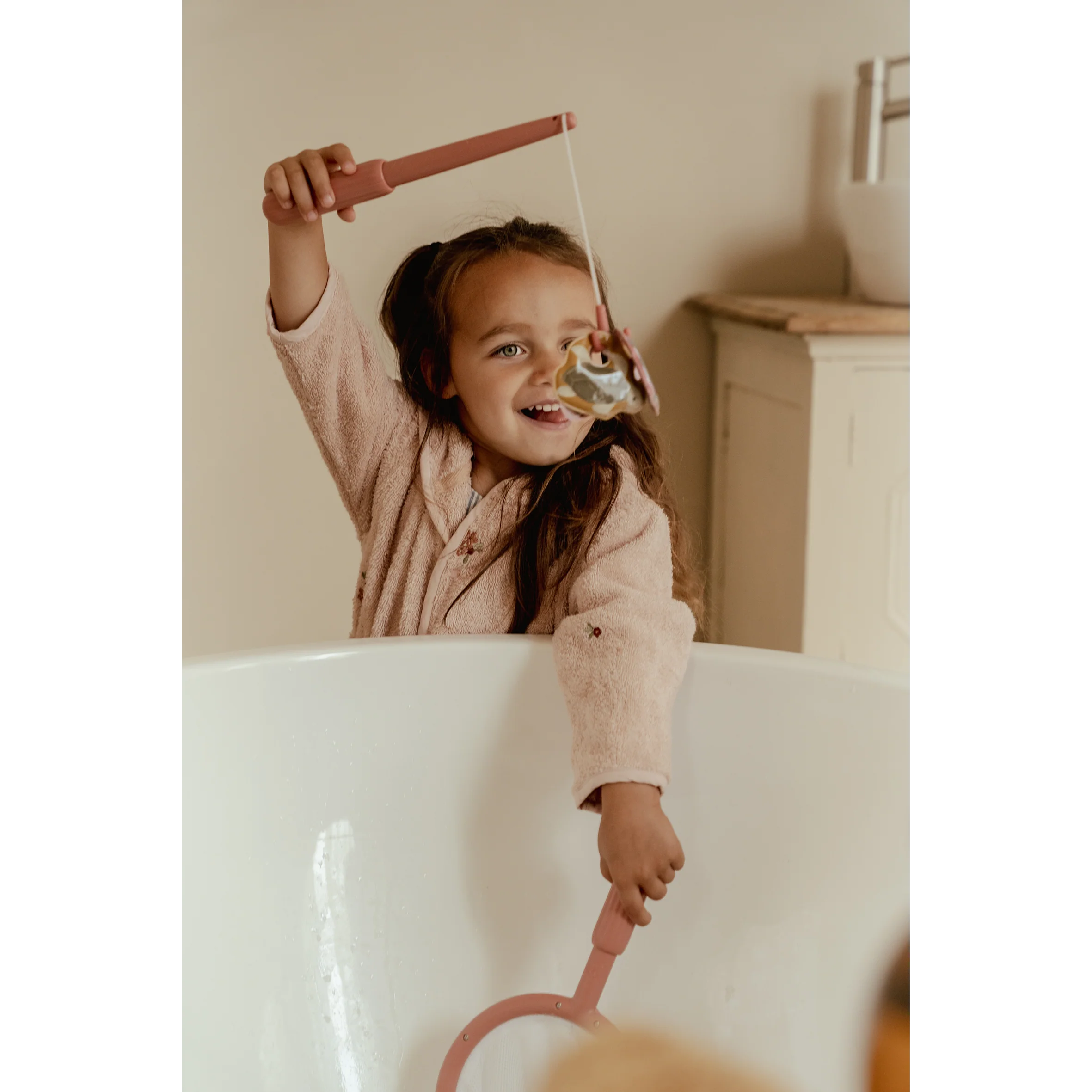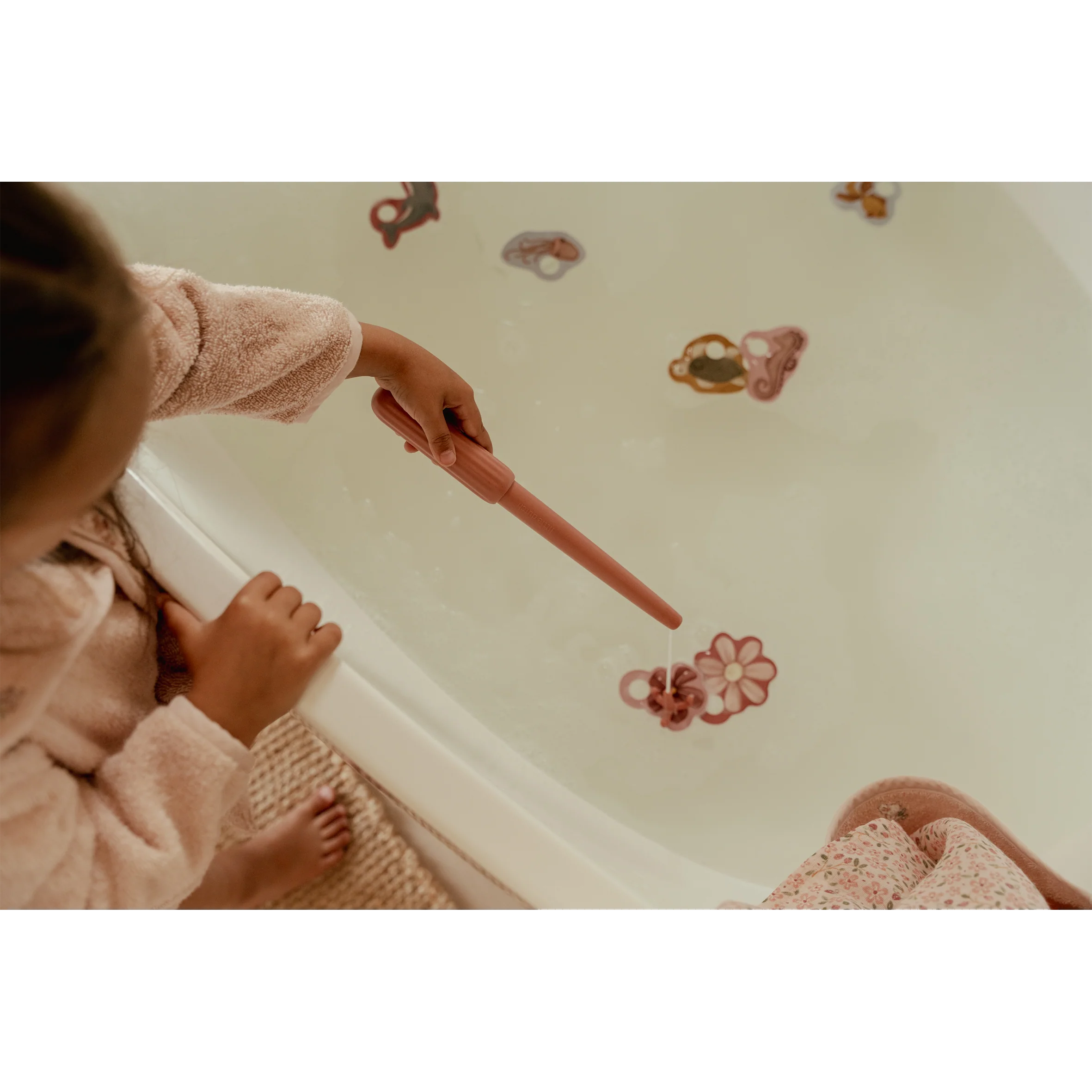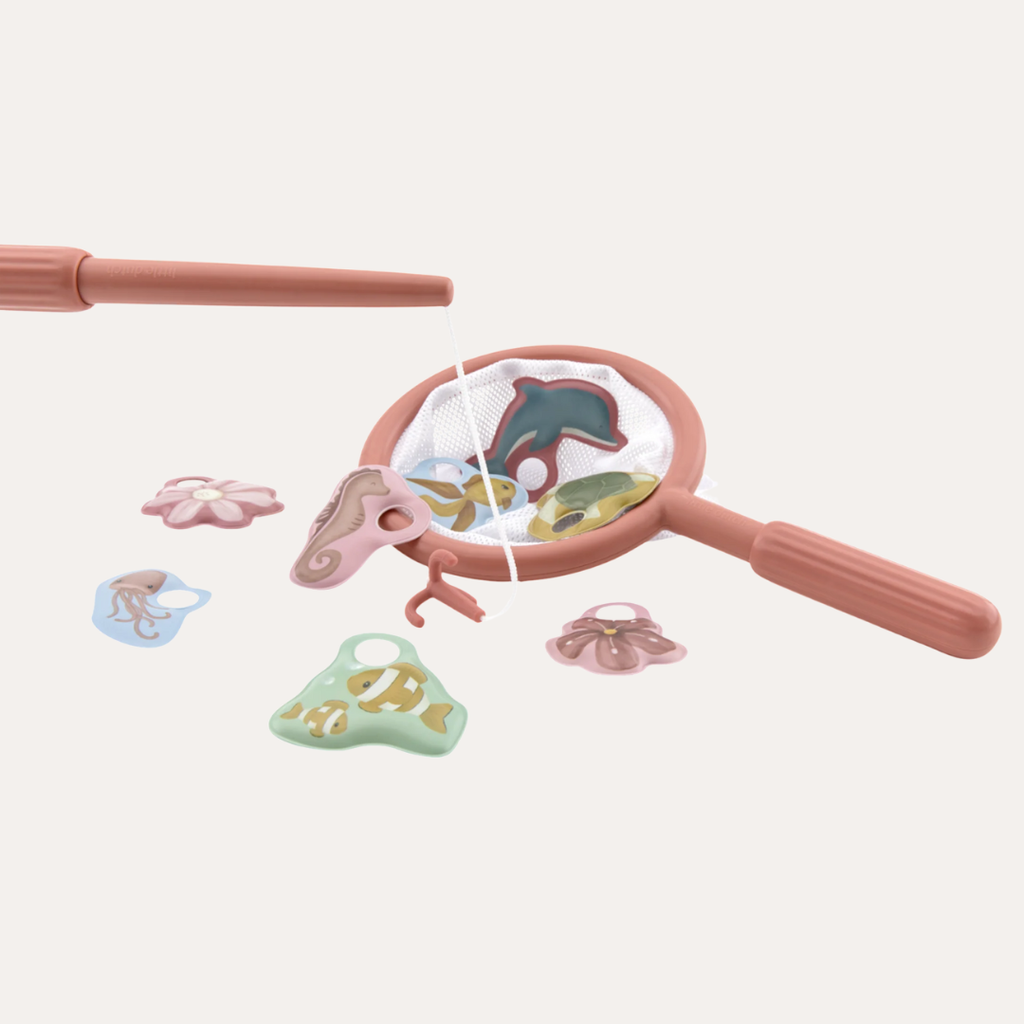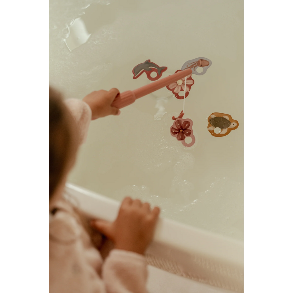 Grab your fishing rod and dive into fun with this pink bath fishing game! Each bath becomes a joyful adventure with a set that includes a fishing rod, a net, and eight vibrant figures like flowers and sea creatures. Kids will have a blast fishing, scooping, and exploring while sharpening their motor skills. The removable handles on the rod and net make tidying up a breeze. Making bath time a splash of fun has never been easier!