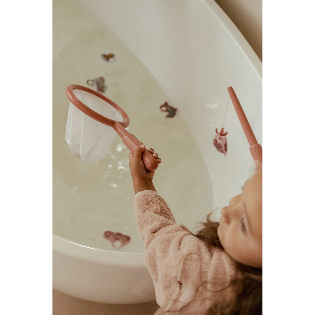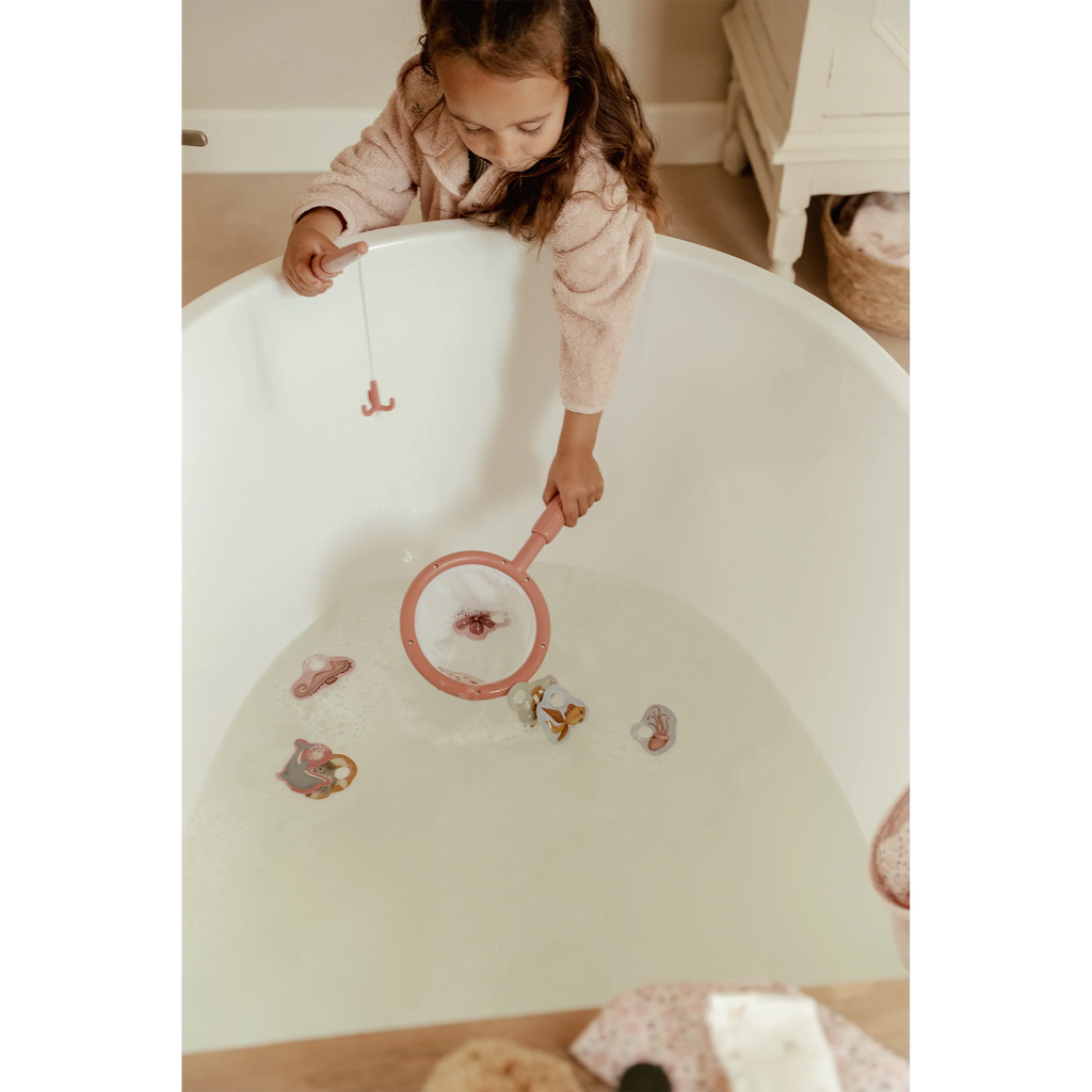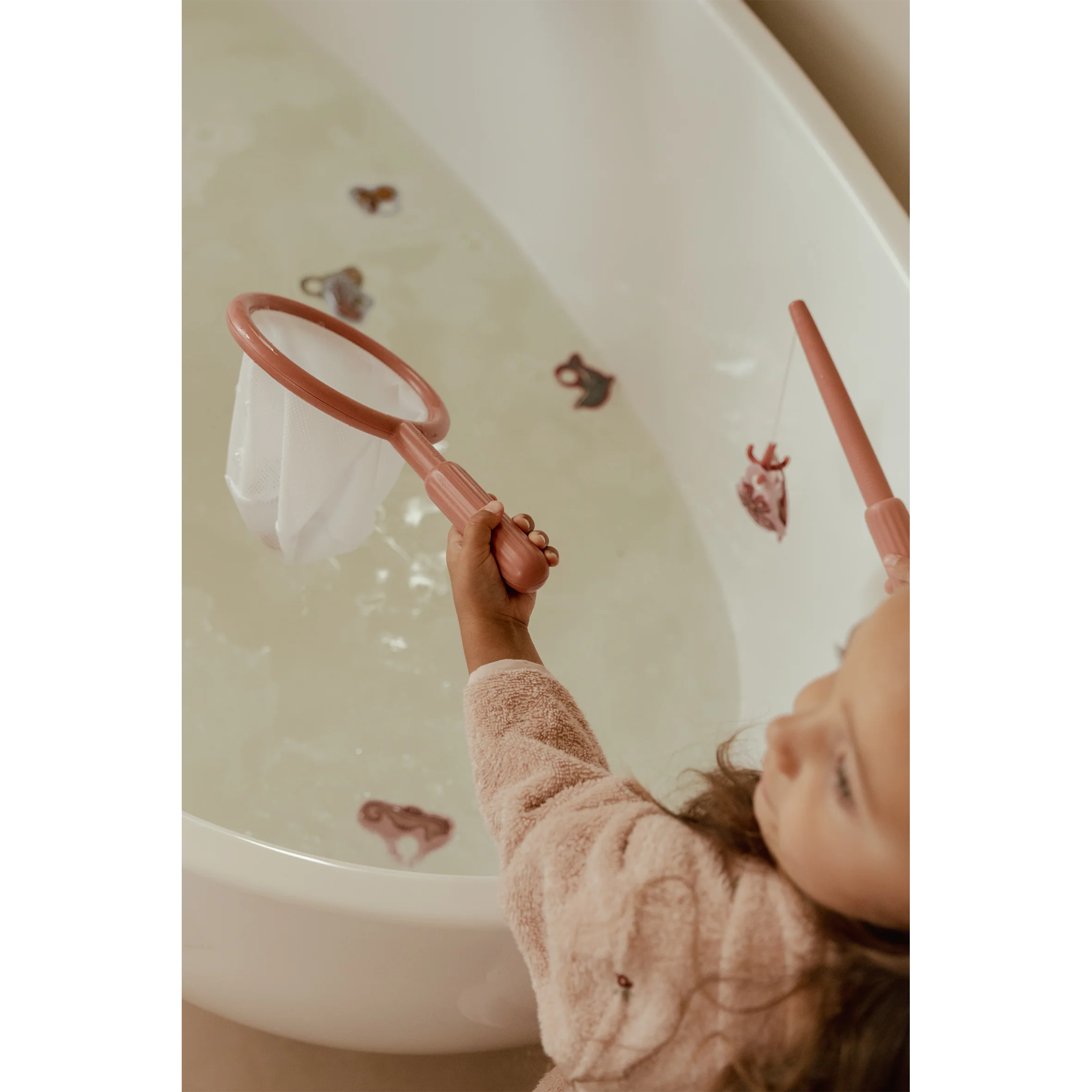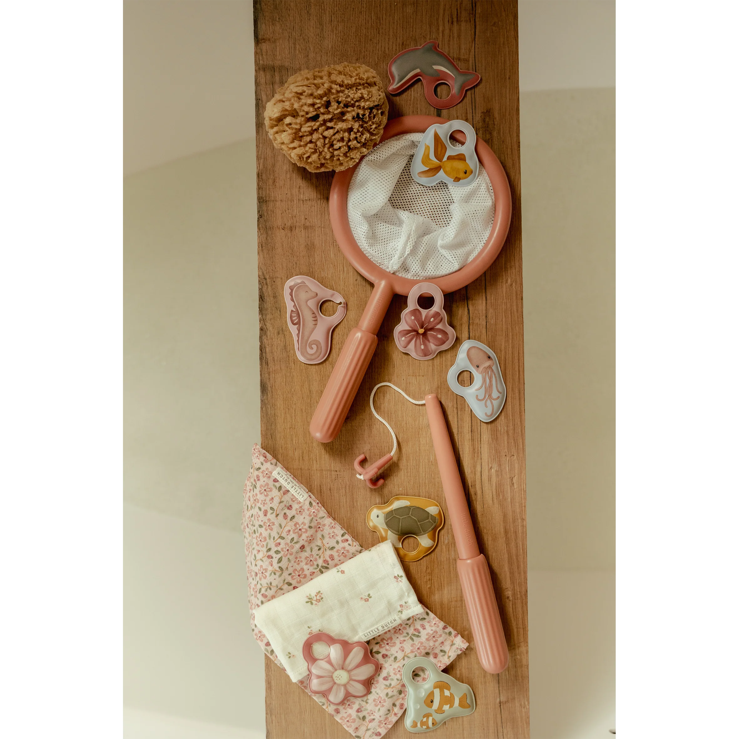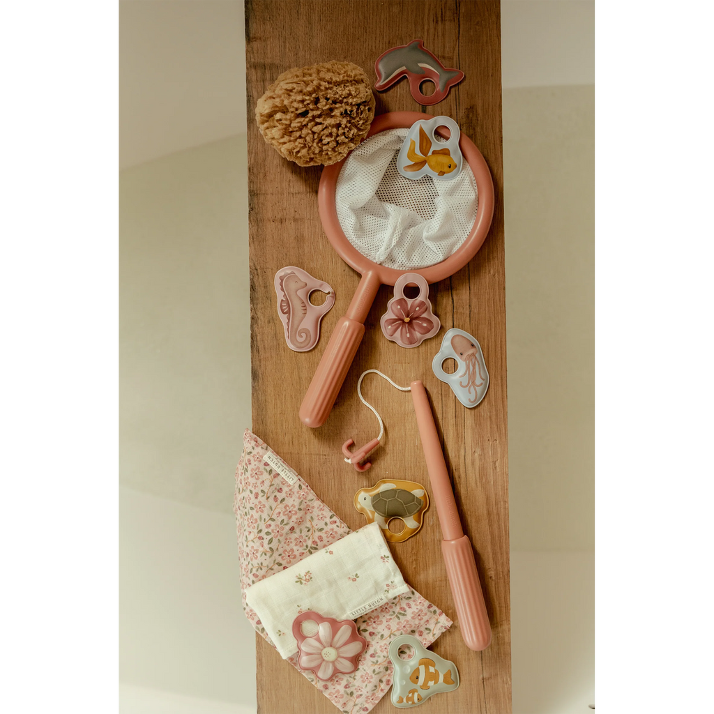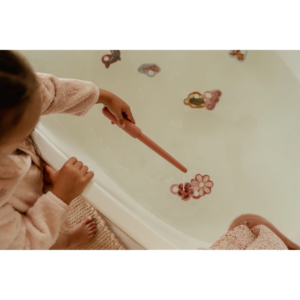Grab your fishing rod and dive into fun with this pink bath fishing game! Each bath becomes a joyful adventure with a set that includes a fishing rod, a net, and eight vibrant figures like flowers and sea creatures. Kids will have a blast fishing, scooping, and exploring while sharpening their motor skills. The removable handles on the rod and net make tidying up a breeze. Making bath time a splash of fun has never been easier!