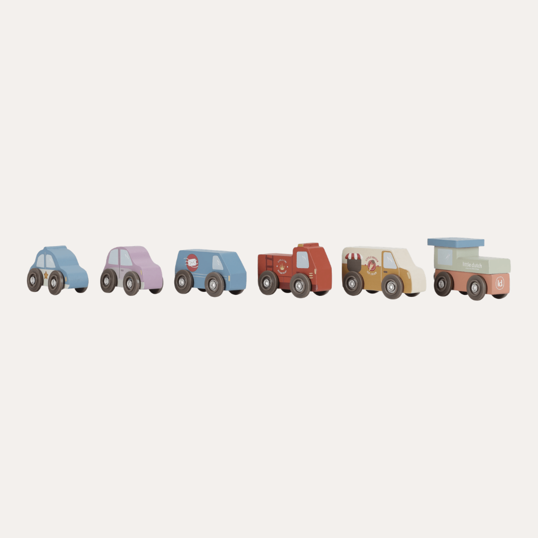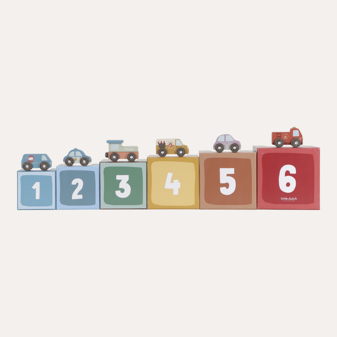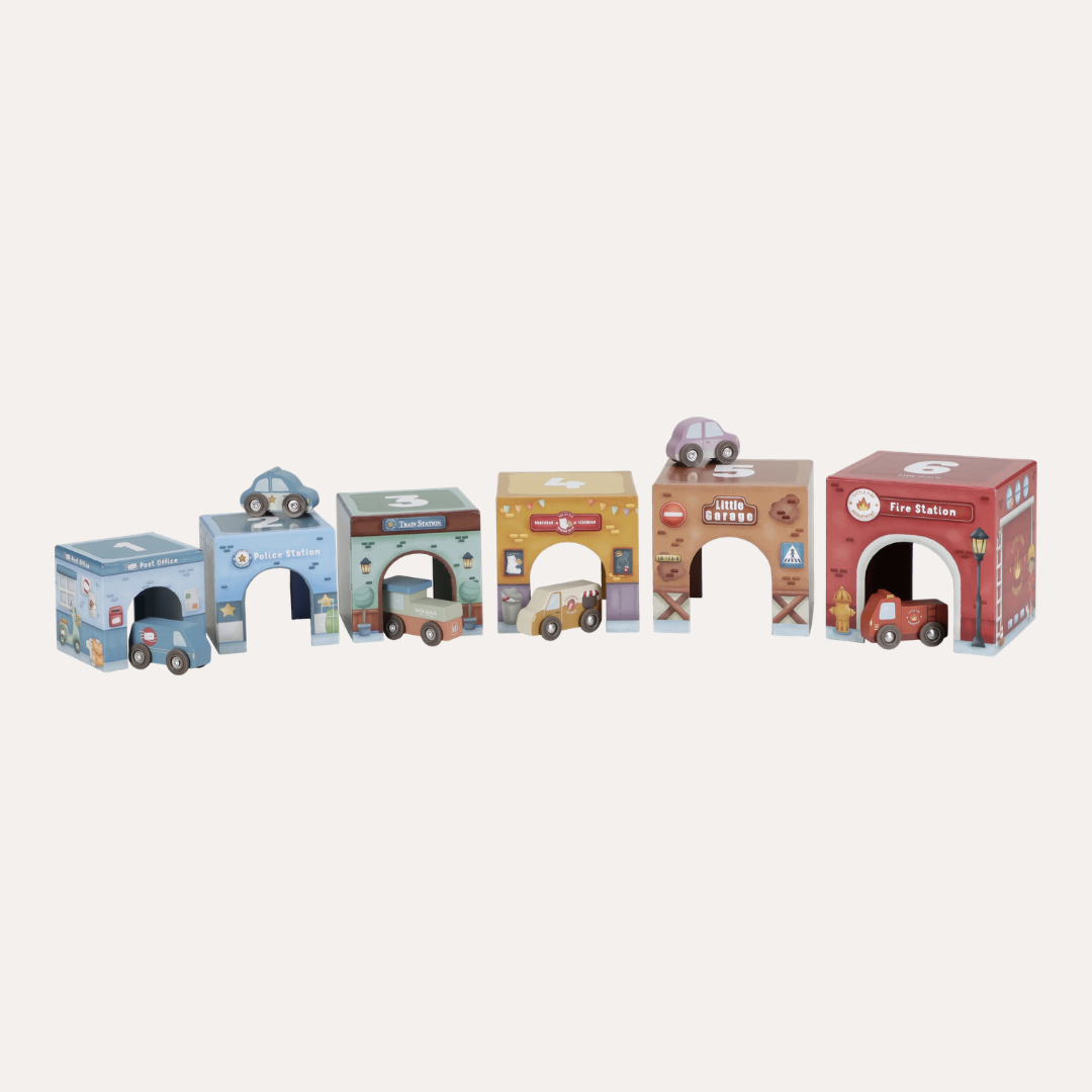 Stack them skyward, arrange them as a track, or integrate them seamlessly with the Little Dutch Train Track XL - watch as vehicles glide effortlessly beneath. Designed to nurture fine motor skills and creative thinking, these blocks transform simple stacking into storytelling, one layer at a time.