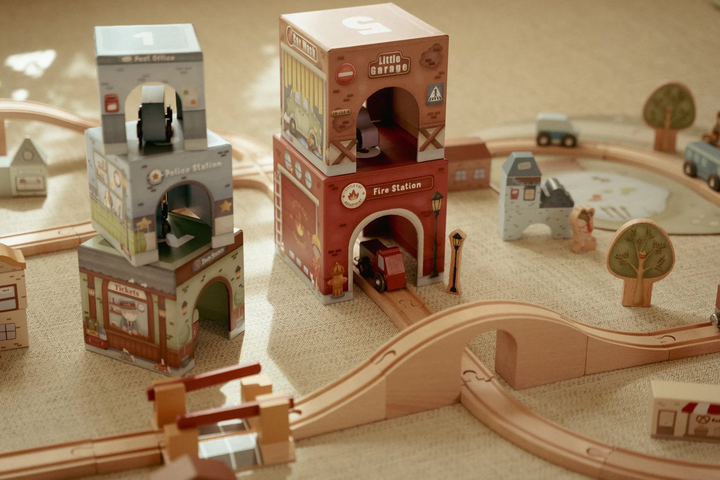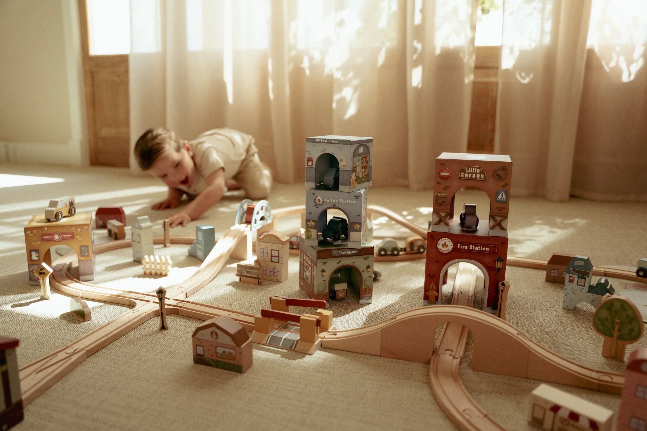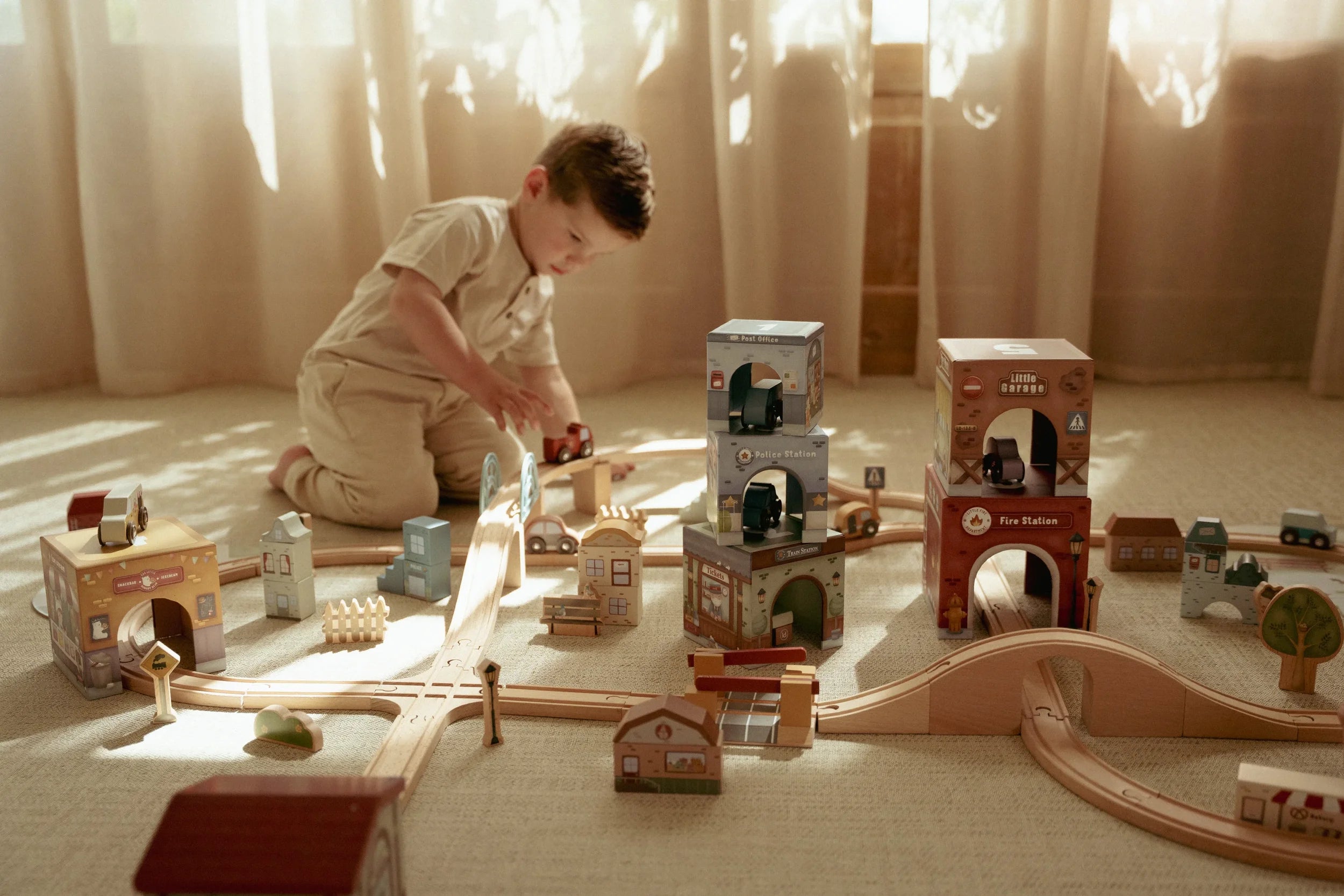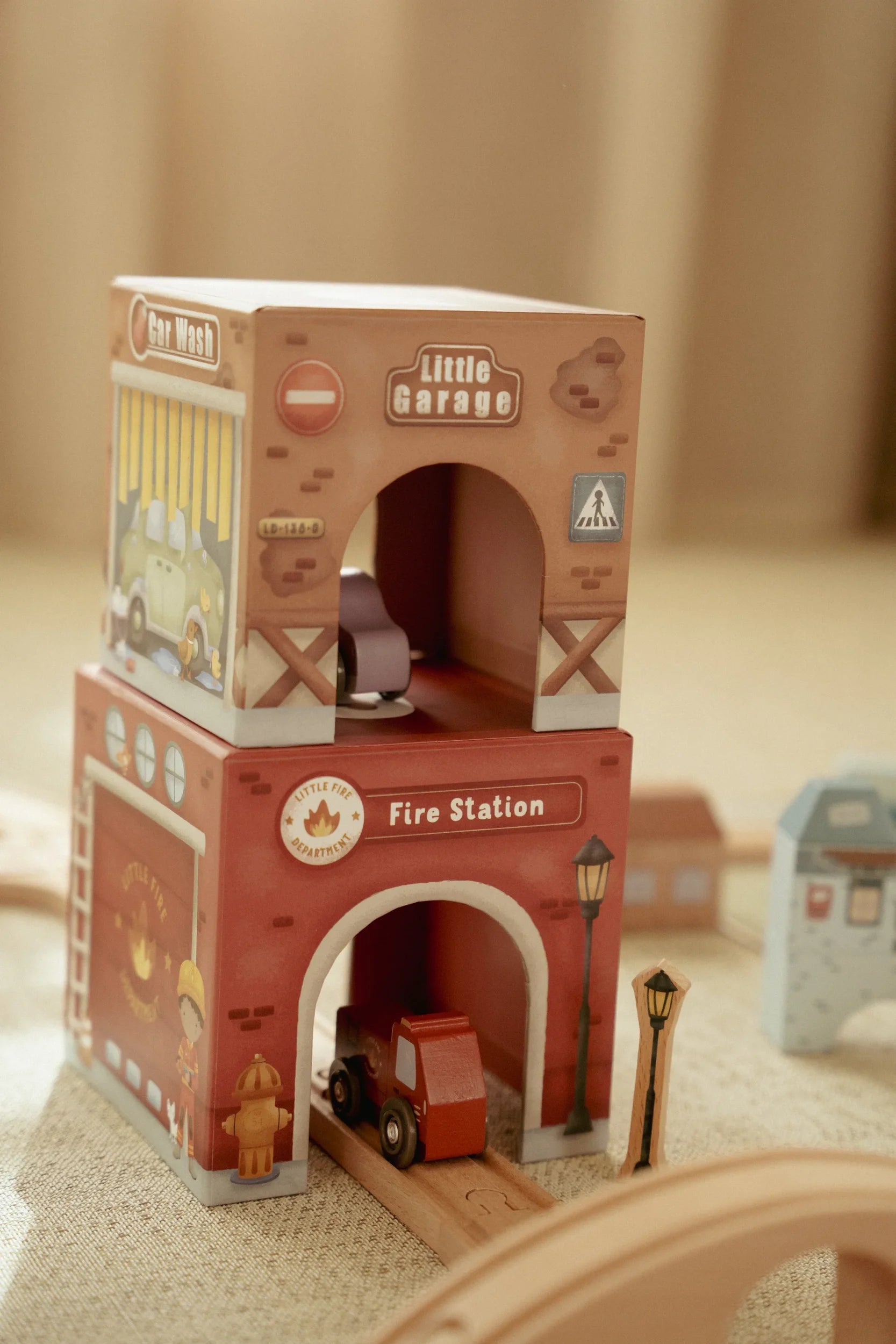 Stack them skyward, arrange them as a track, or integrate them seamlessly with the Little Dutch Train Track XL - watch as vehicles glide effortlessly beneath. Designed to nurture fine motor skills and creative thinking, these blocks transform simple stacking into storytelling, one layer at a time.