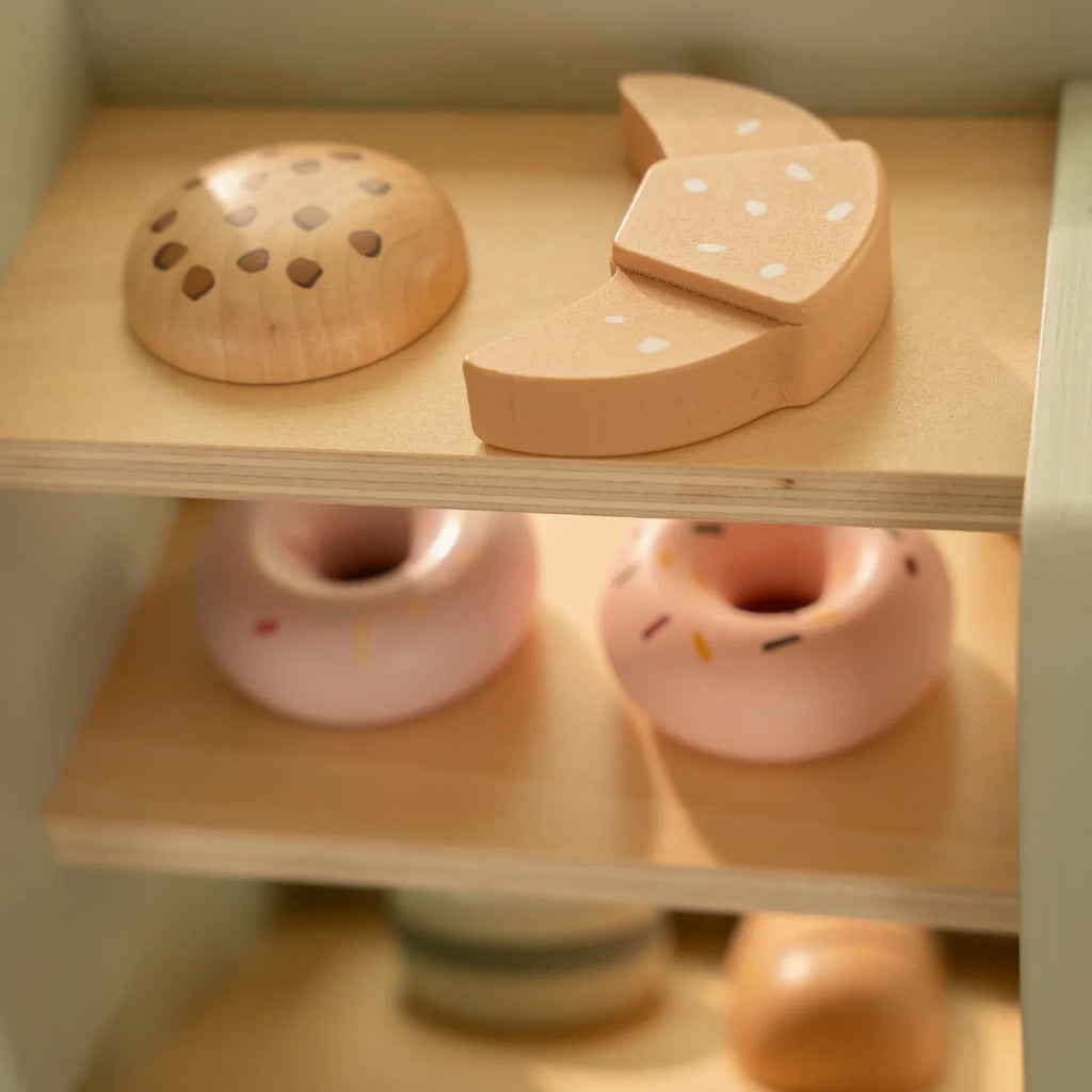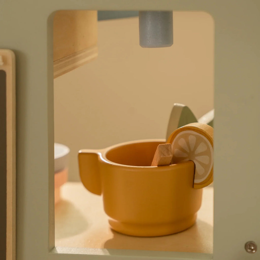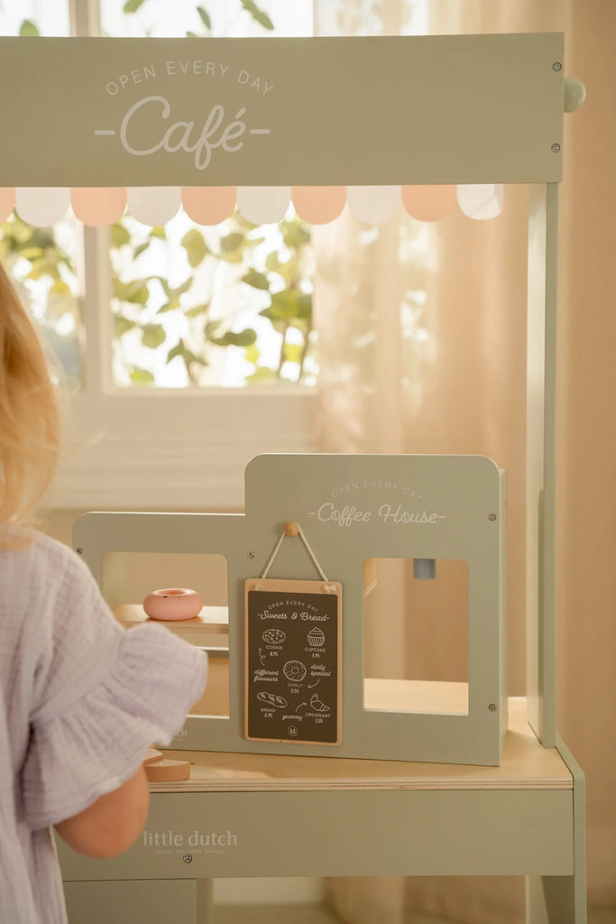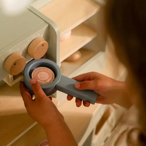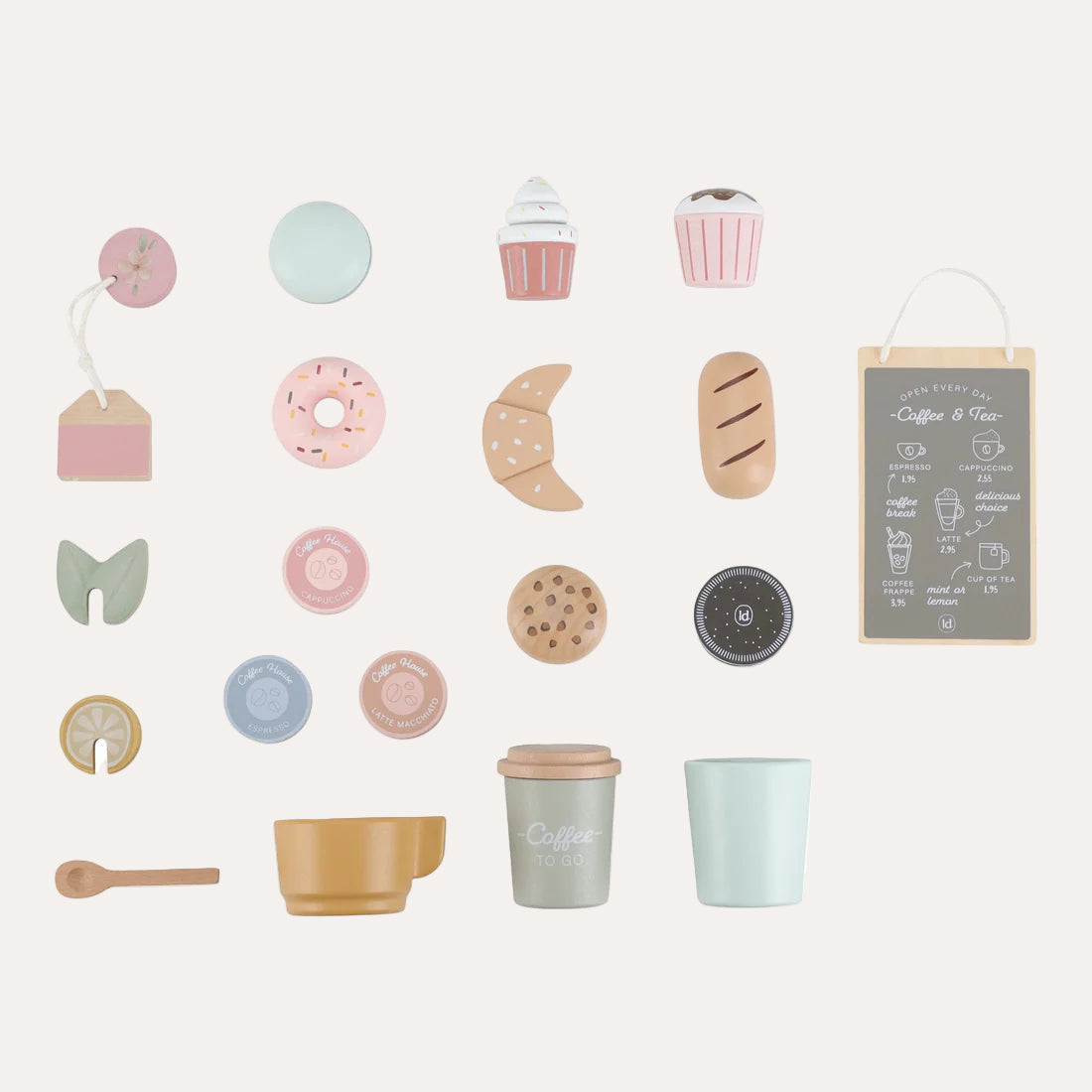 Welcome to the comfiest coffee corner around! Serve up a tasty cup of coffee or tea alongside a fresh sandwich or pastry. This charming toy coffee corner lets little ones press buttons, pick the perfect setting, and pop in a coffee pad for a real barista feel. The set includes a coffee and tea machine, cup storage, and a cabinet to showcase all the yummy treats. Who will be the first to place an order?