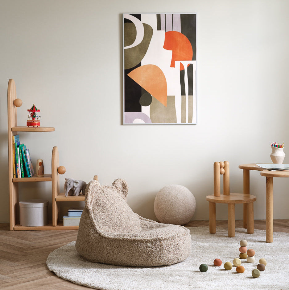 The Bear Beanbag adds a cosy and playful touch to a kids' bedroom. Thoughtfully made for kids, Its the perfect spot for reading, relaxing, and unwinding after a long day. Crafted from soft, high-quality materials, this easy-to-move beanbag is designed for comfort and style and those little ears make it simply irresistible!