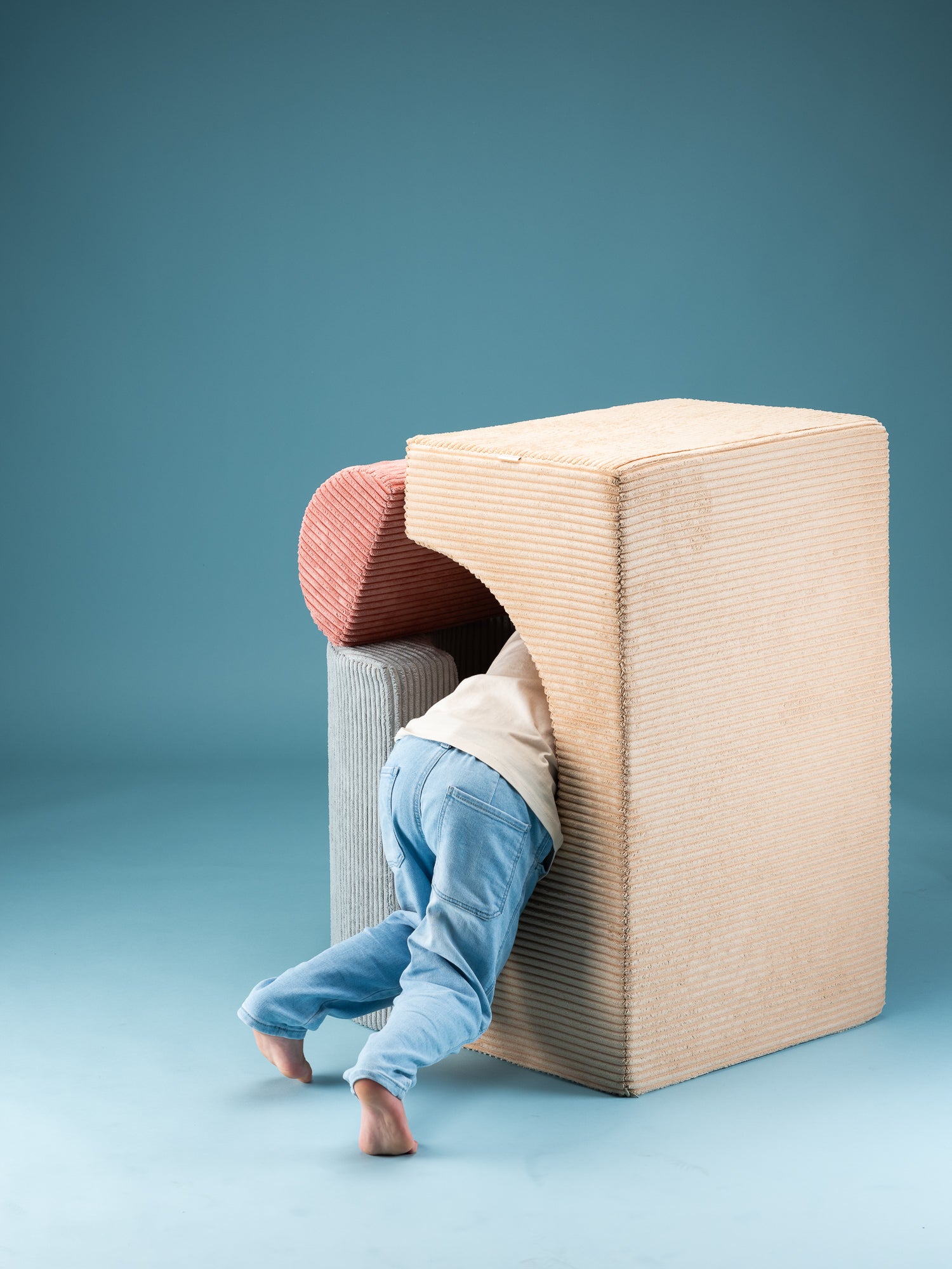 The Wigiwama Playset is a flexible, soft play set featuring three uniquely shaped pieces that open the door to endless imaginative fun. Kids can stack, build, or transform these pieces into a comfy chair, a playful table, stepping stones, or a snug little fort for adventurous play.