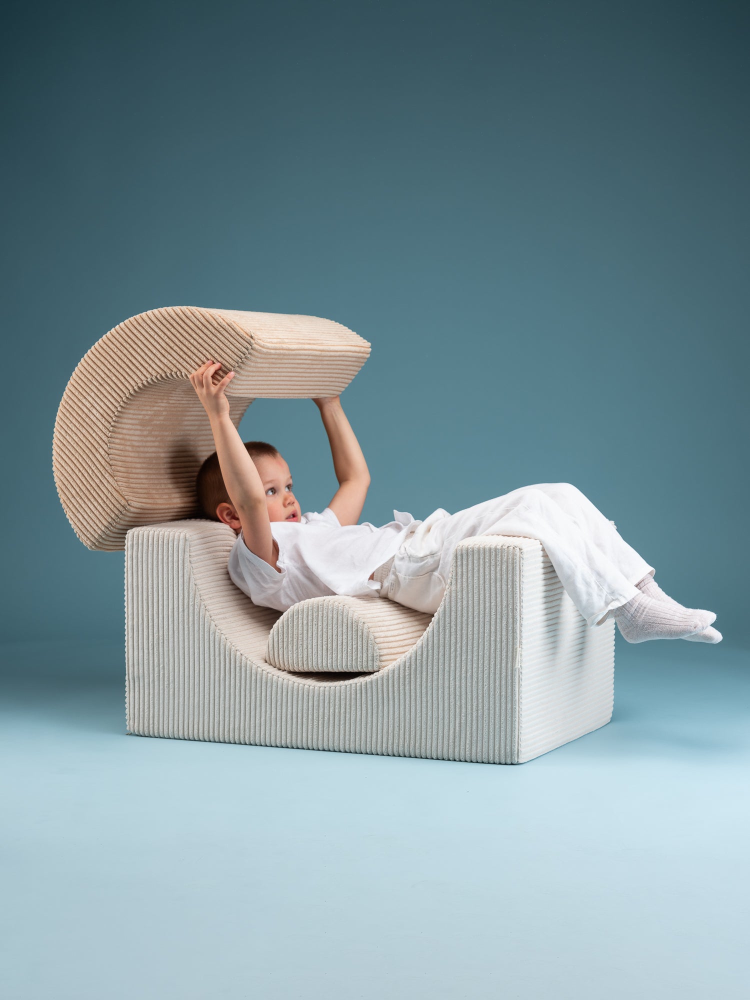 The Wigiwama Playset is a flexible, soft play set featuring three uniquely shaped pieces that open the door to endless imaginative fun. Kids can stack, build, or transform these pieces into a comfy chair, a playful table, stepping stones, or a snug little fort for adventurous play.