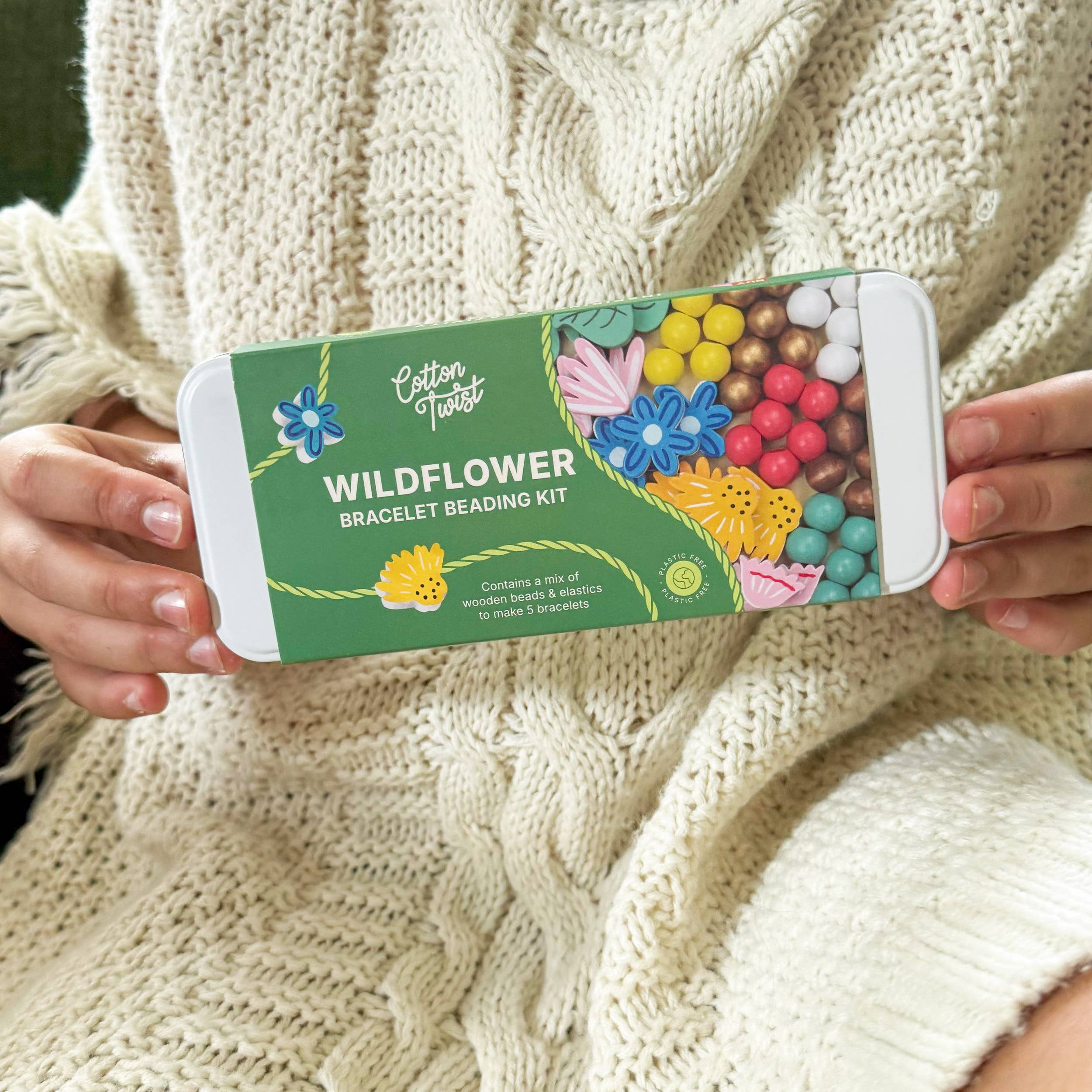 Craft five beautiful bracelets with the Wildflower Bracelet Bead Kit - a treasure trove of natural wooden beads nestled in a charming reusable tin.