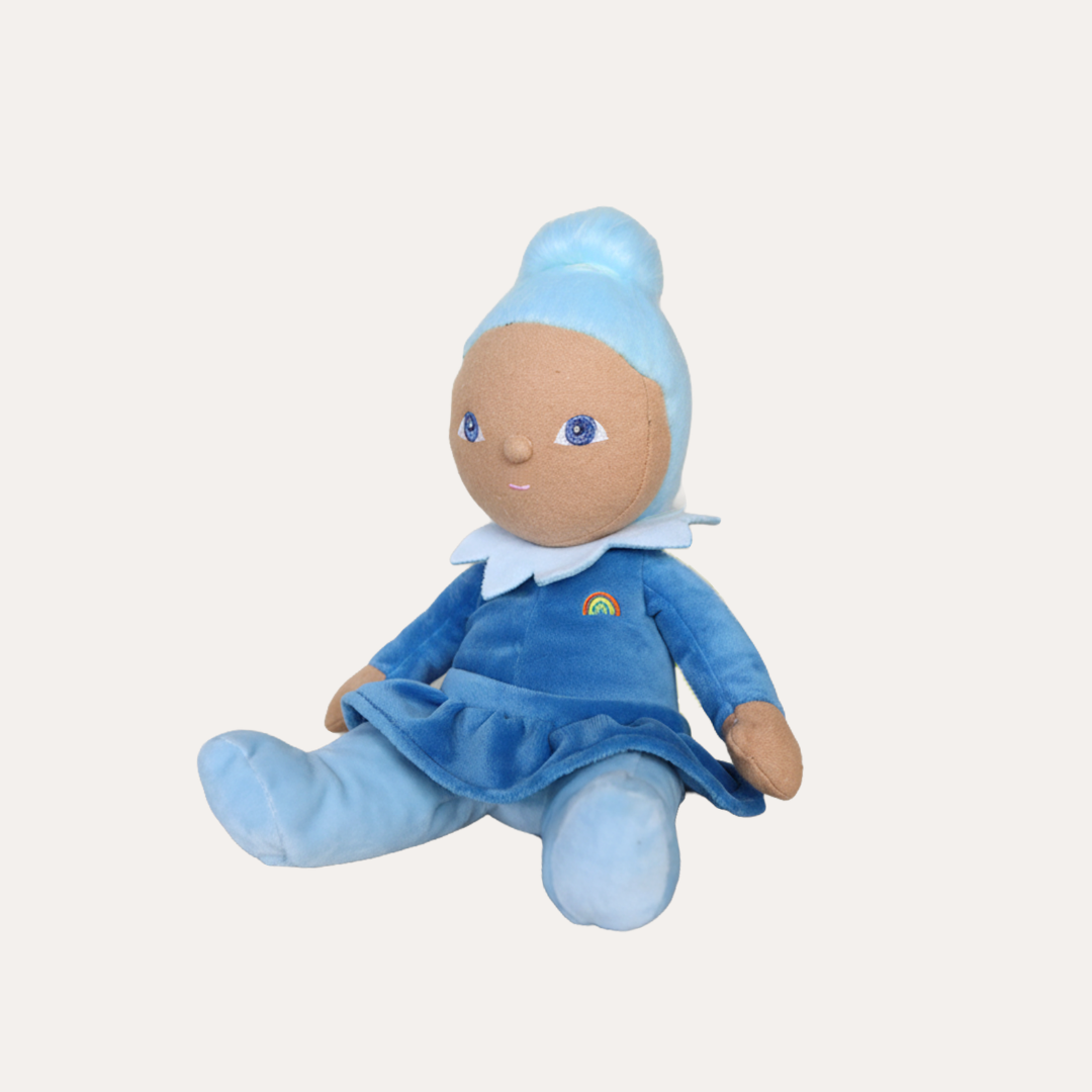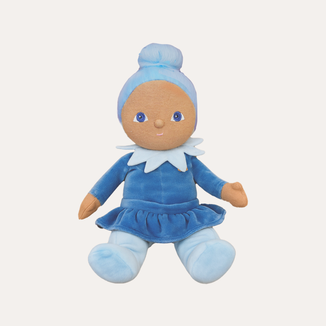 Iris twirls into your heart in her signature blue dress - a pocket-sized companion with a calm, joyful spirit.