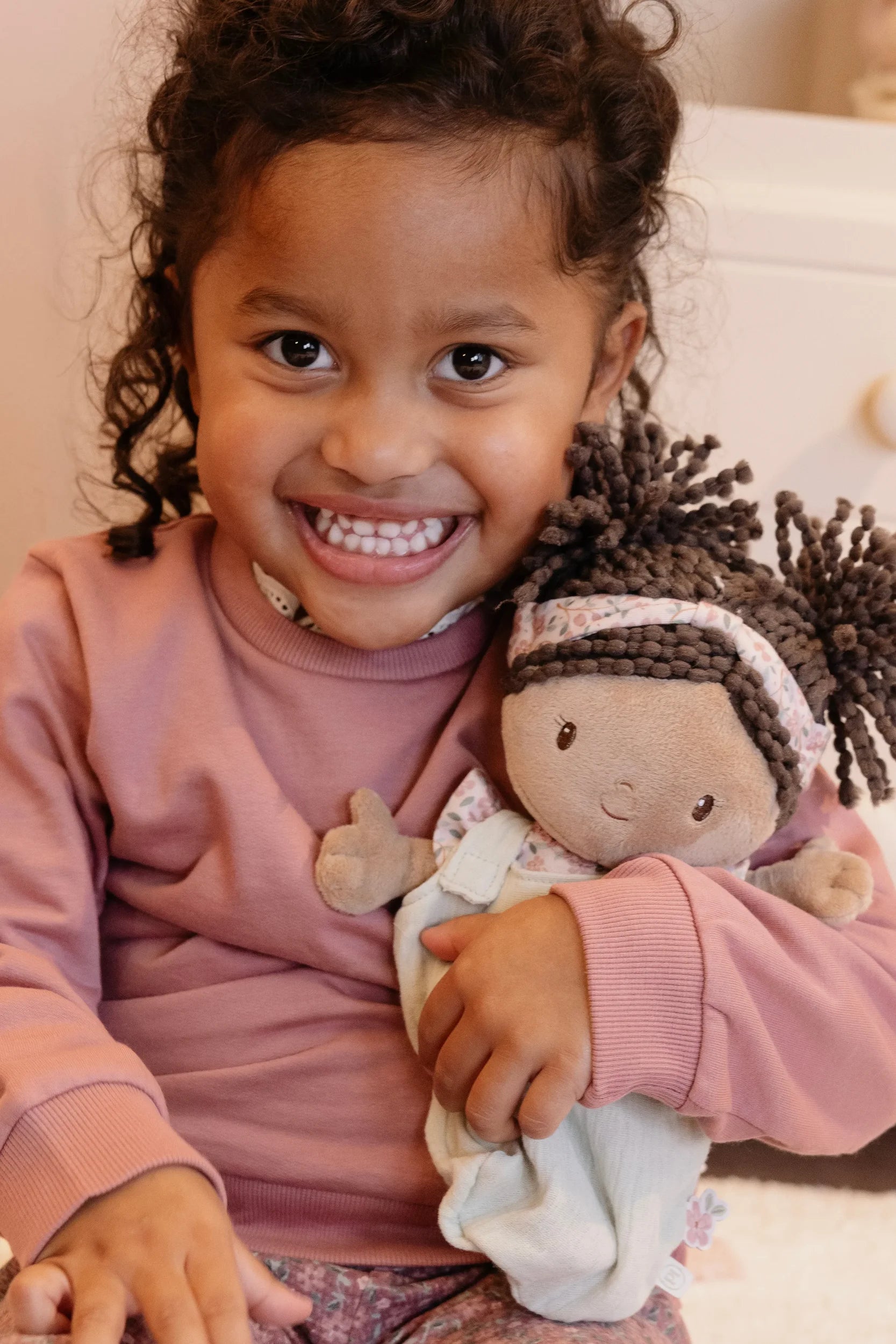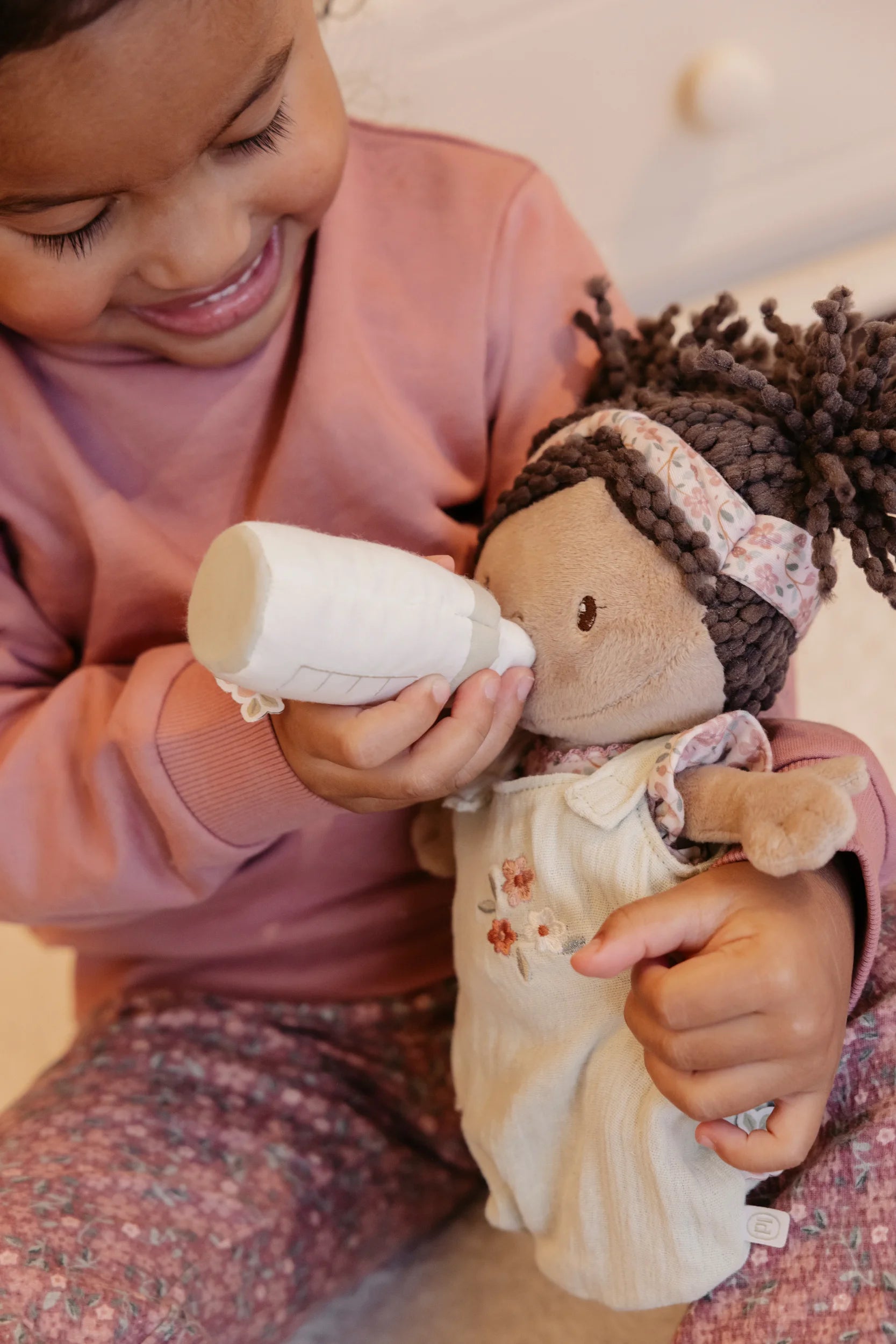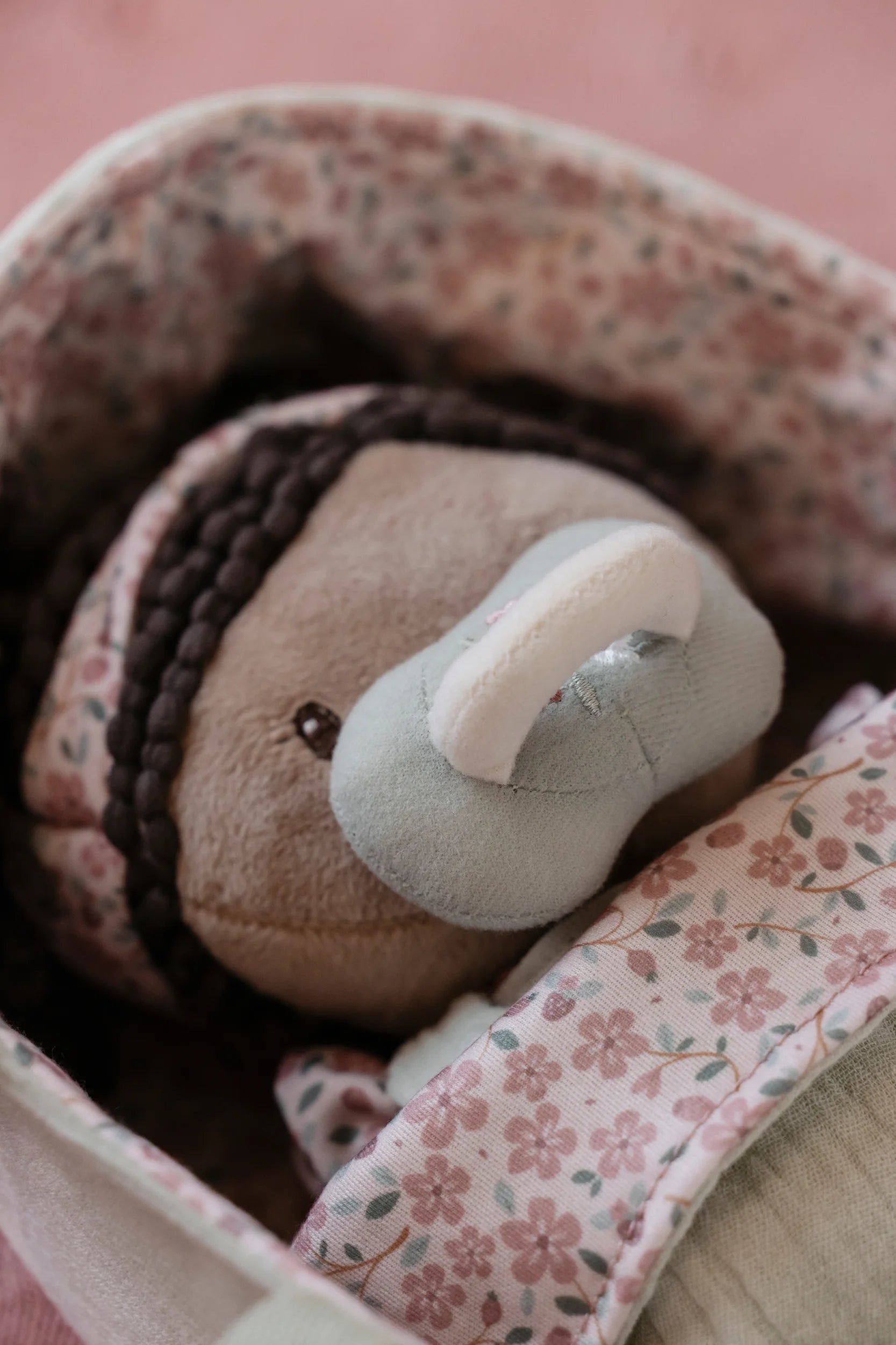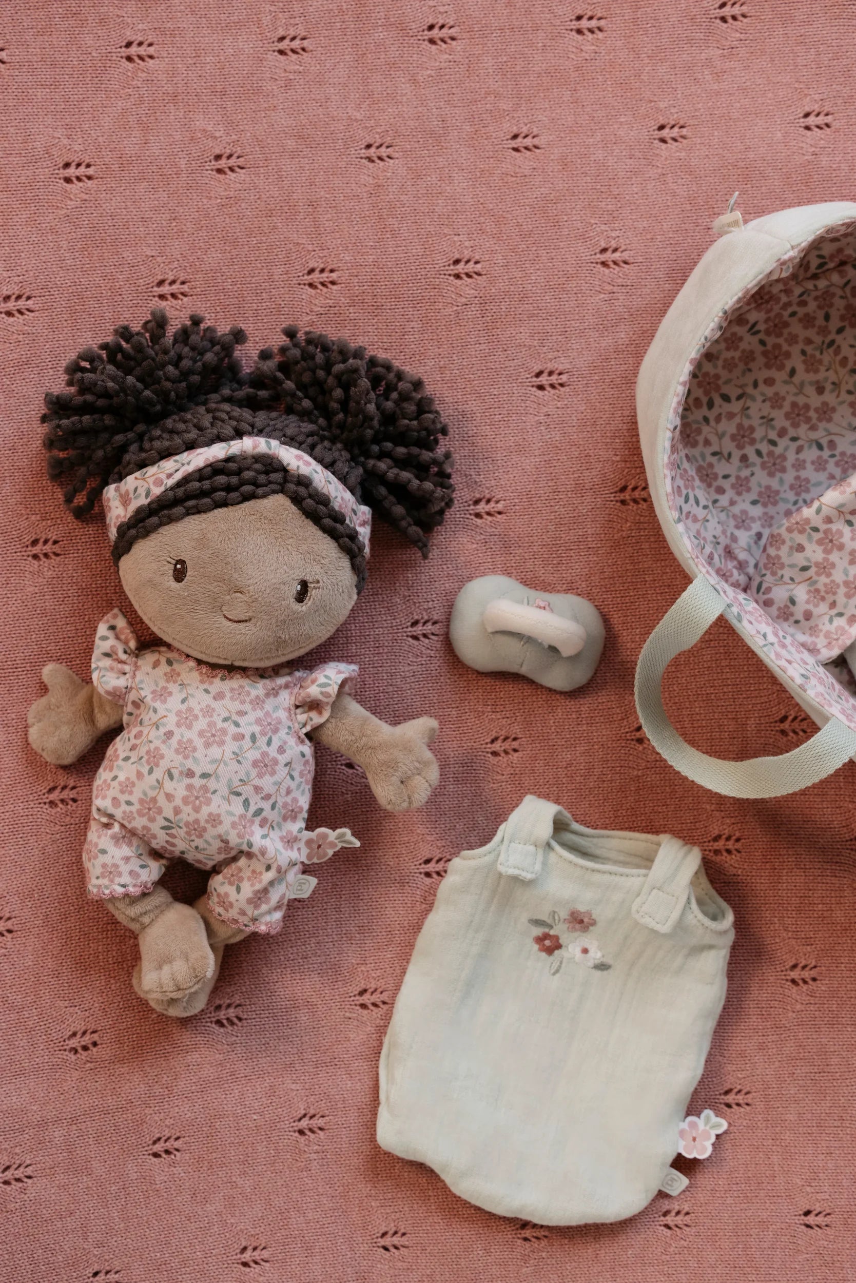 Introduce little ones to nurturing play with baby doll Evi, complete with her charming travel basket. This delightful companion arrives dressed in a cosy sleeping bag and removable romper, inviting endless dressing adventures. Magnetic pacifier and bottle attachments make feeding time seamless and mess-free. The ribbed fabric basket features a cheerful floral design, paired with a soft matching blanket—everything needed for imaginative cuddles and caregiving games that spark joy and creativity.