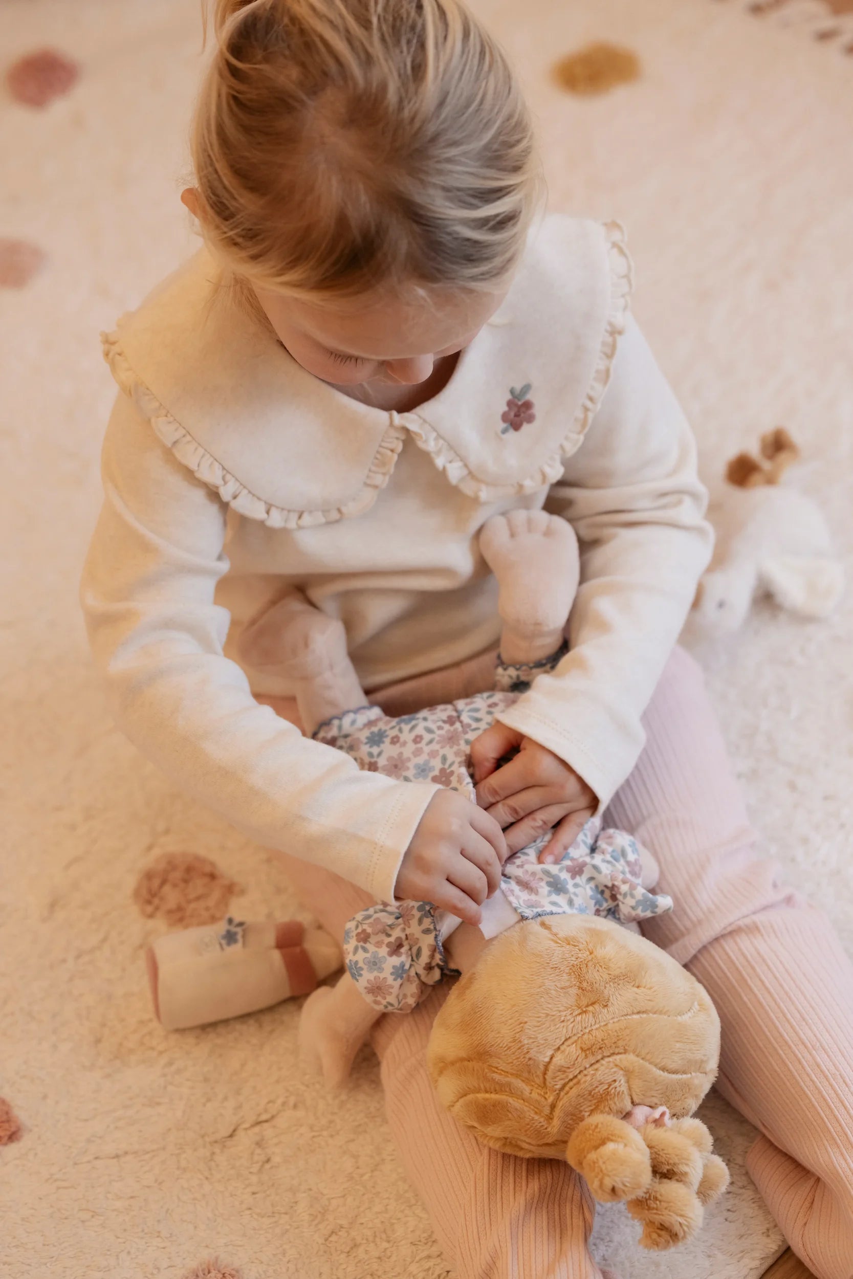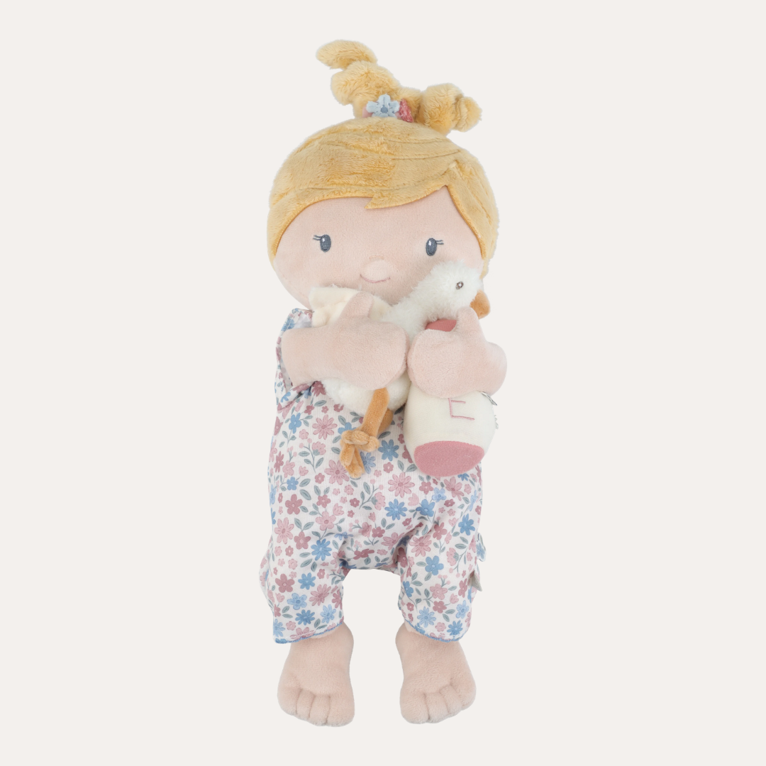 Julia is your new best friend—a 40cm soft companion ready for endless cuddles and imaginative play. Dressed in her charming romper with a removable nappy fastened by Velcro, she invites you into a world of nurturing games. Her magnetic hands grip a bottle perfectly, making feeding time feel wonderfully real. Plus, she comes with an adorable little goose friend to complete the adventure. Perfect for little ones who love caring play and storytelling magic.