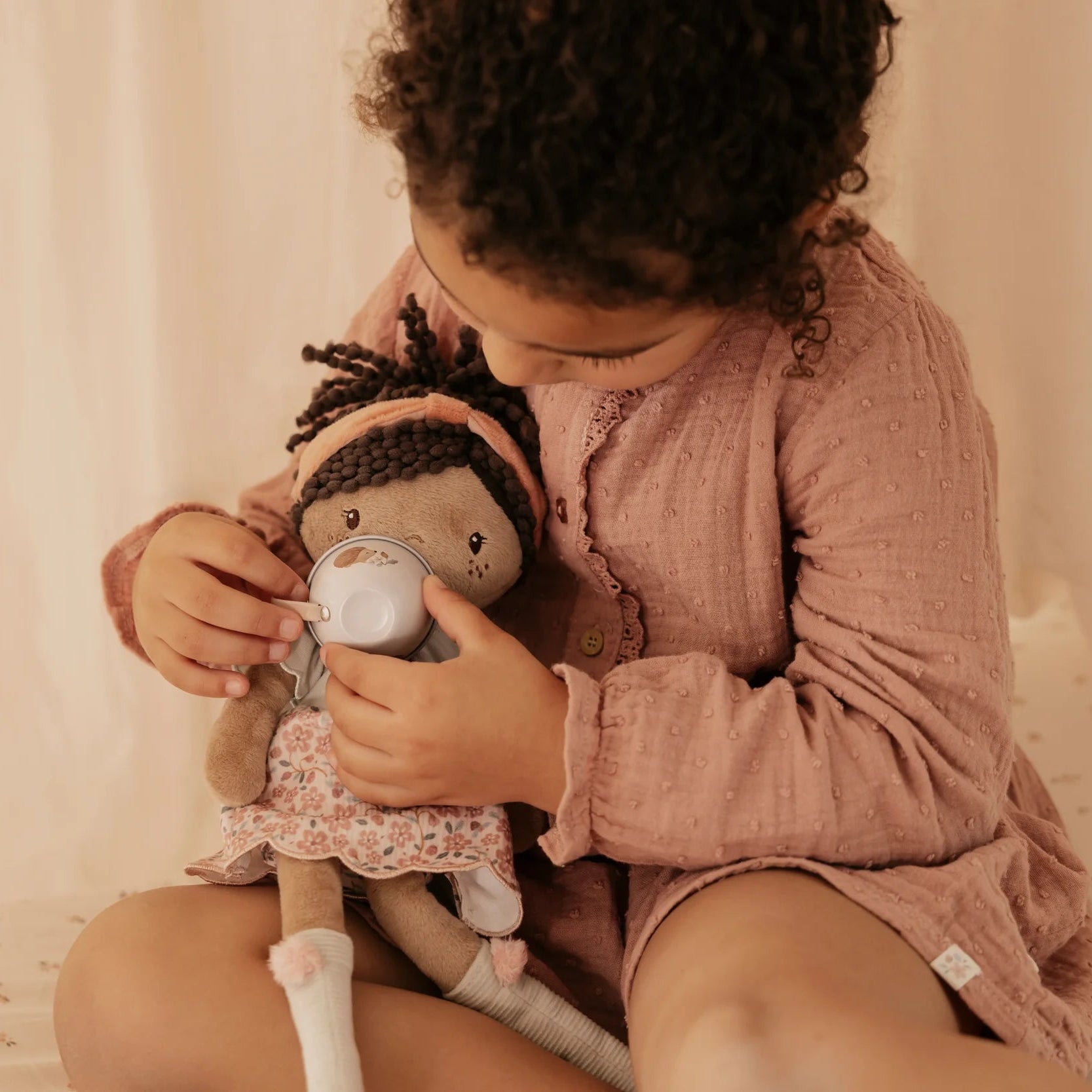 Introducing Evi, your little one's newest best friend! This 35 cm cuddle companion features a delightfully soft body, a cheerful flower-patterned skirt, and an adorable curly tail that begs to be hugged. Crafted from wonderfully plush material, Evi is lightweight and portable—perfect for tucking into a backpack or snuggling during bedtime. She arrives beautifully packaged in a storage box, making her an instant gift-ready treasure. Watch as Evi becomes the star of countless imaginative journeys, tea parties, and cosy adventures.