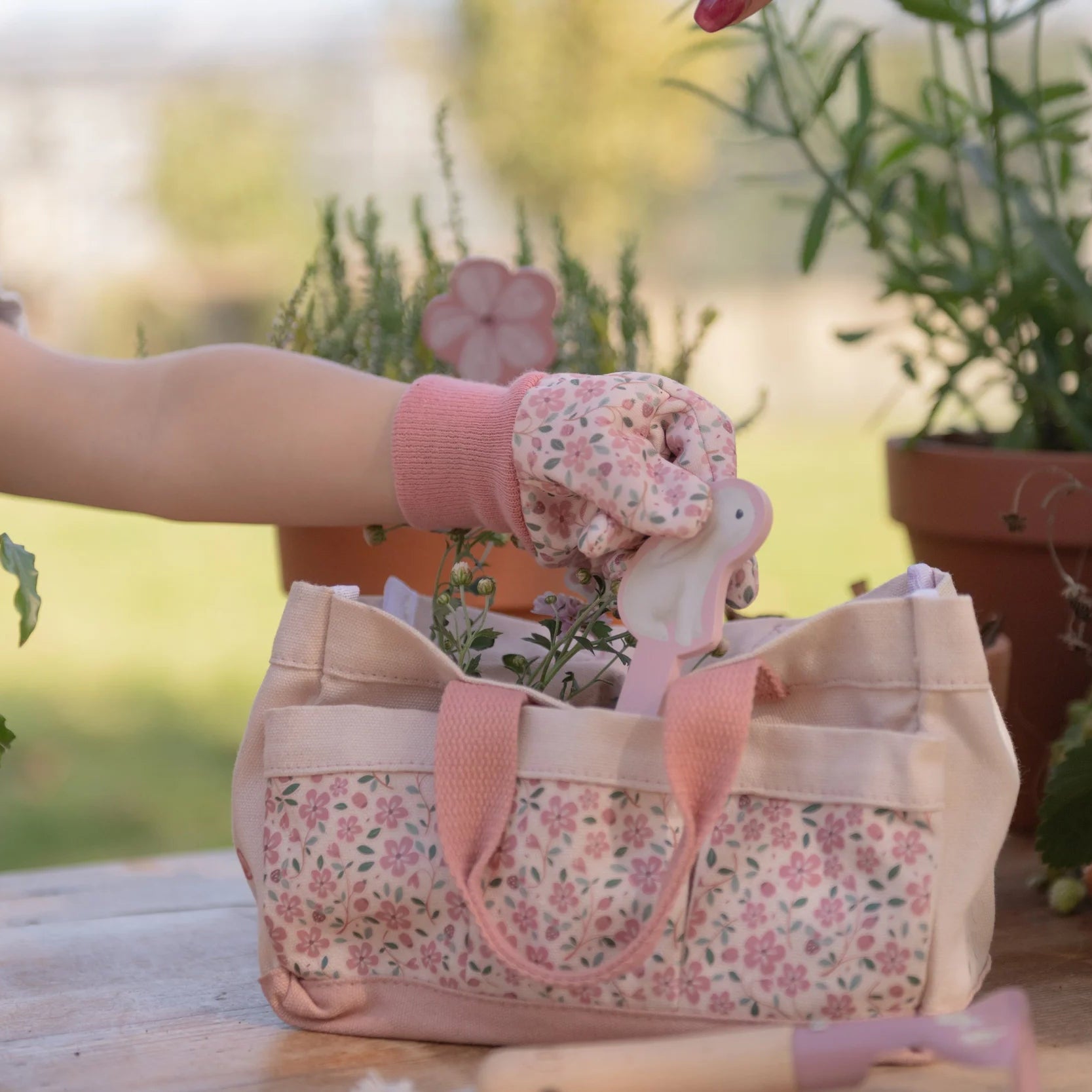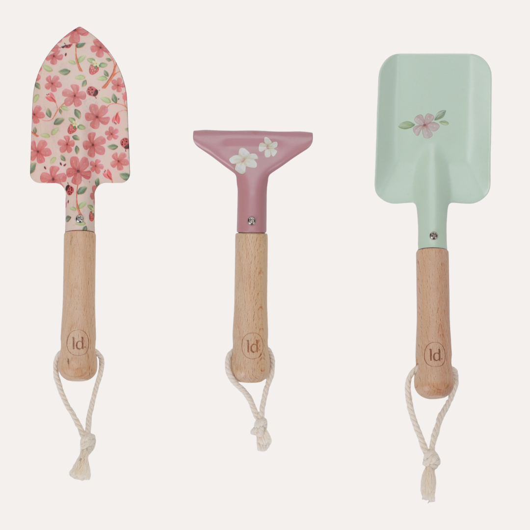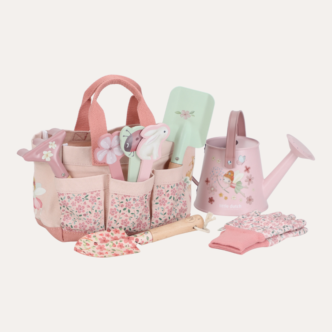 Introduce young gardeners to the joy of growing with the Little Dutch Garden Gift Set. This thoughtfully curated 10-piece collection features a watering can, compact tool set, protective gloves, and wooden plant markers - all nestled in a charming FSC cotton canvas bag adorned with Fairy Garden illustrations in soft pink.