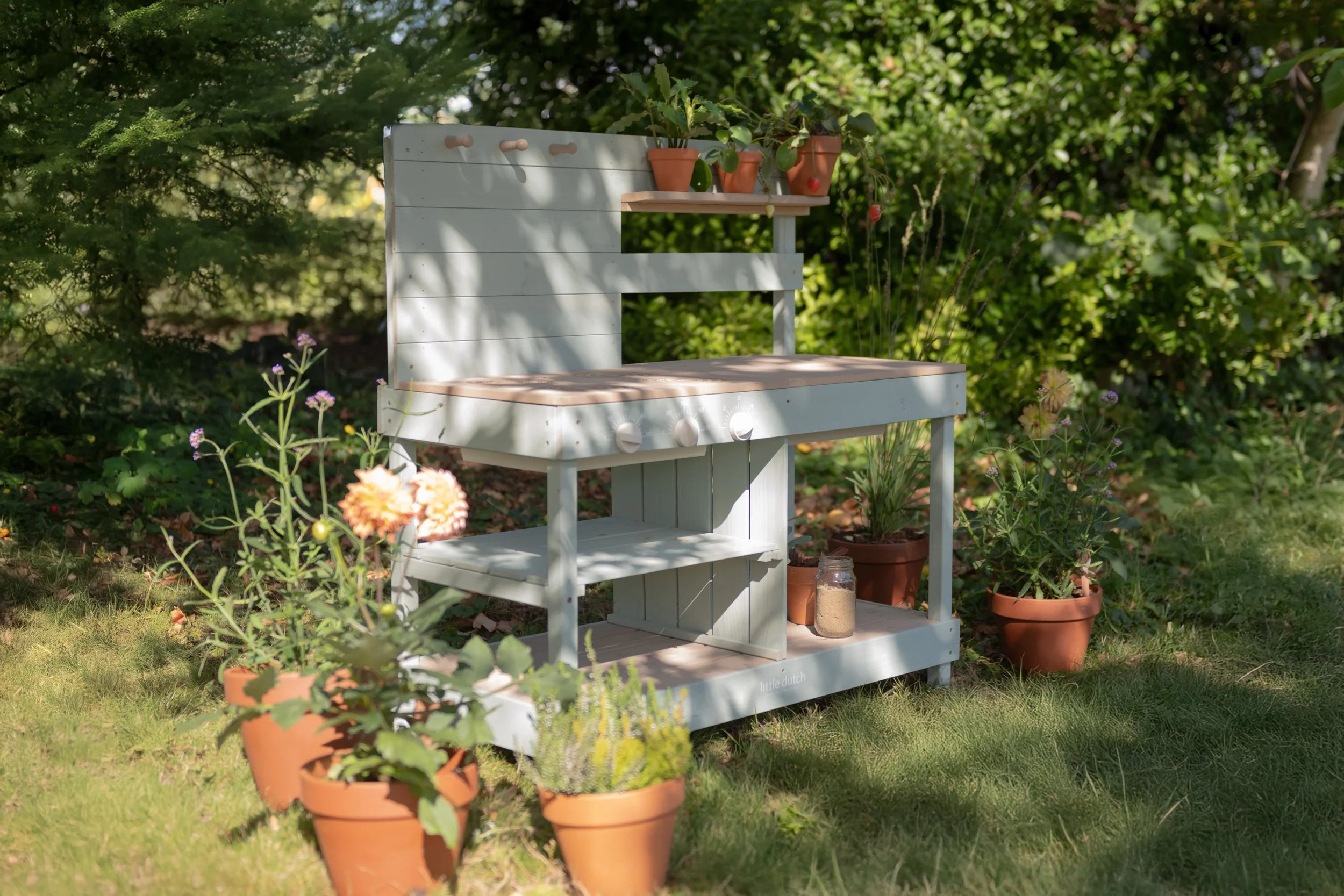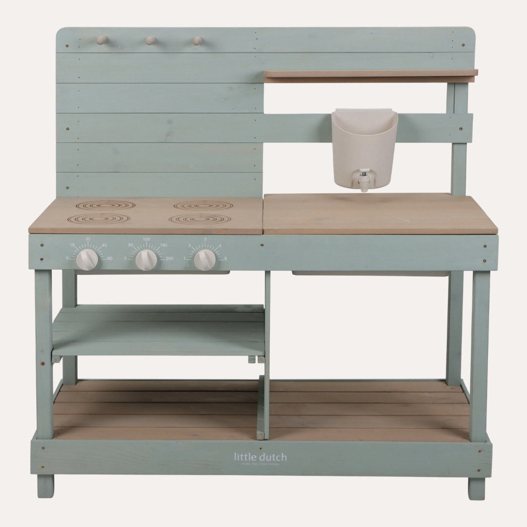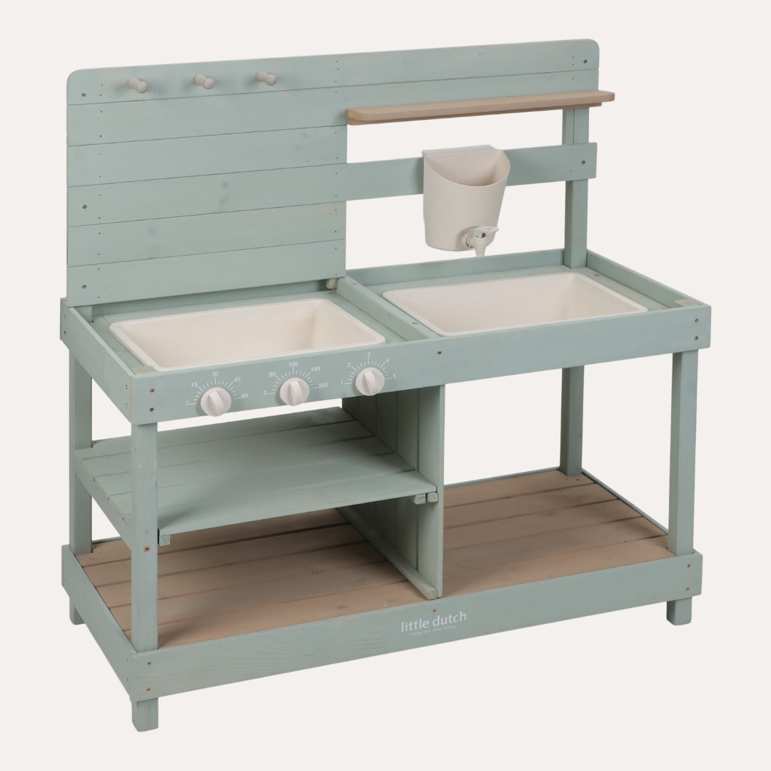 Bring outdoor entertaining to life with this Limited Edition wooden mud kitchen—where little chefs create culinary magic under open skies. Perfect for sun-soaked garden days, it transforms backyard play into sophisticated pretend cooking.