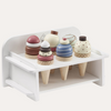 Introducing our delightful ice cream rack featuring six delicious-looking ice creams! The rack boasts a charming white and soft-coloured design, while each ice cream is crafted to resemble various mouthwatering flavours. Ideal for imaginative play, this set is perfect for stocking and selling in pretend stores, sparking endless hours of creative fun and playtime.