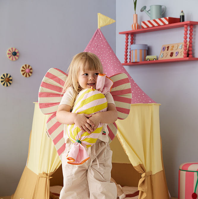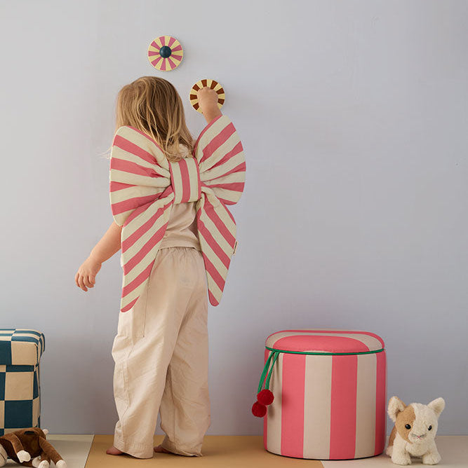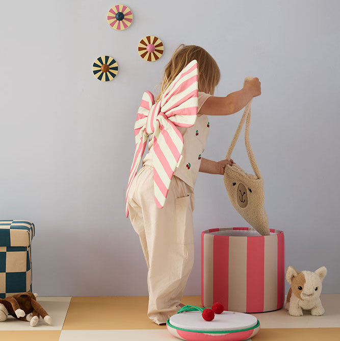 Be your own very big gift. Or someone else's - just by showing up in this oversized bow. This festive textile bow sits neatly between the shoulder blades and is held in place by two elastic shoulder straps. It's soft yet structured, thanks to a light polyester filling that helps it keep its shape while staying comfortable to wear. For birthdays, dressing up, or just because it's Tuesday, this is a piece that turns any day into something a little more festive. Oversized padded shape adds volume and playful drama without being heavy. Elastic shoulder straps make it easy to put on and take off - perfect for dressing up without fuss. Suitable for children from 3 years and up. OEKO‑TEX certified for peace of mind. Machine washable at 30 degrees.