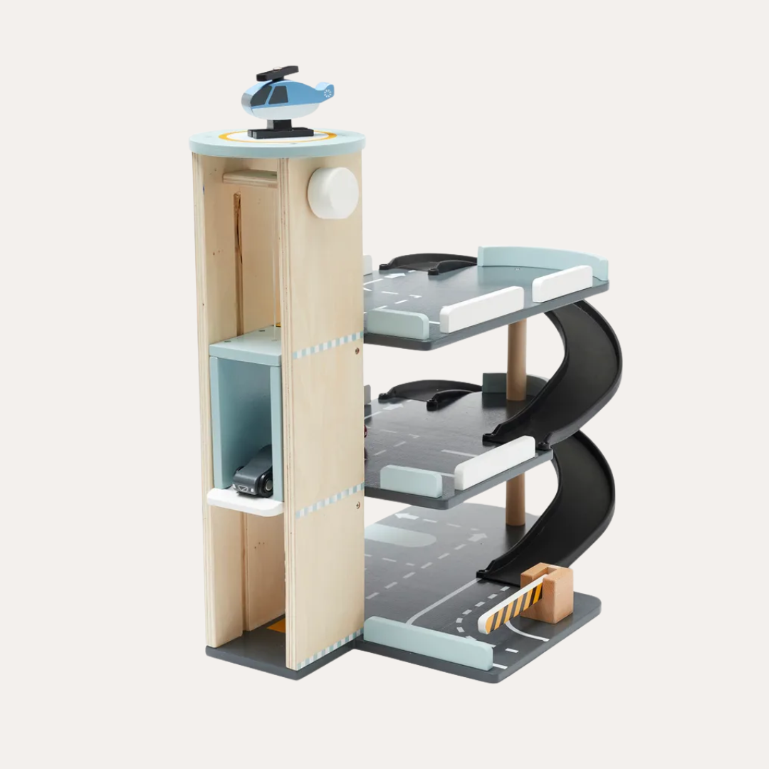 Discover timeless play with the 3-Level Car Park Garage from the Aiden range by Kids Concept.