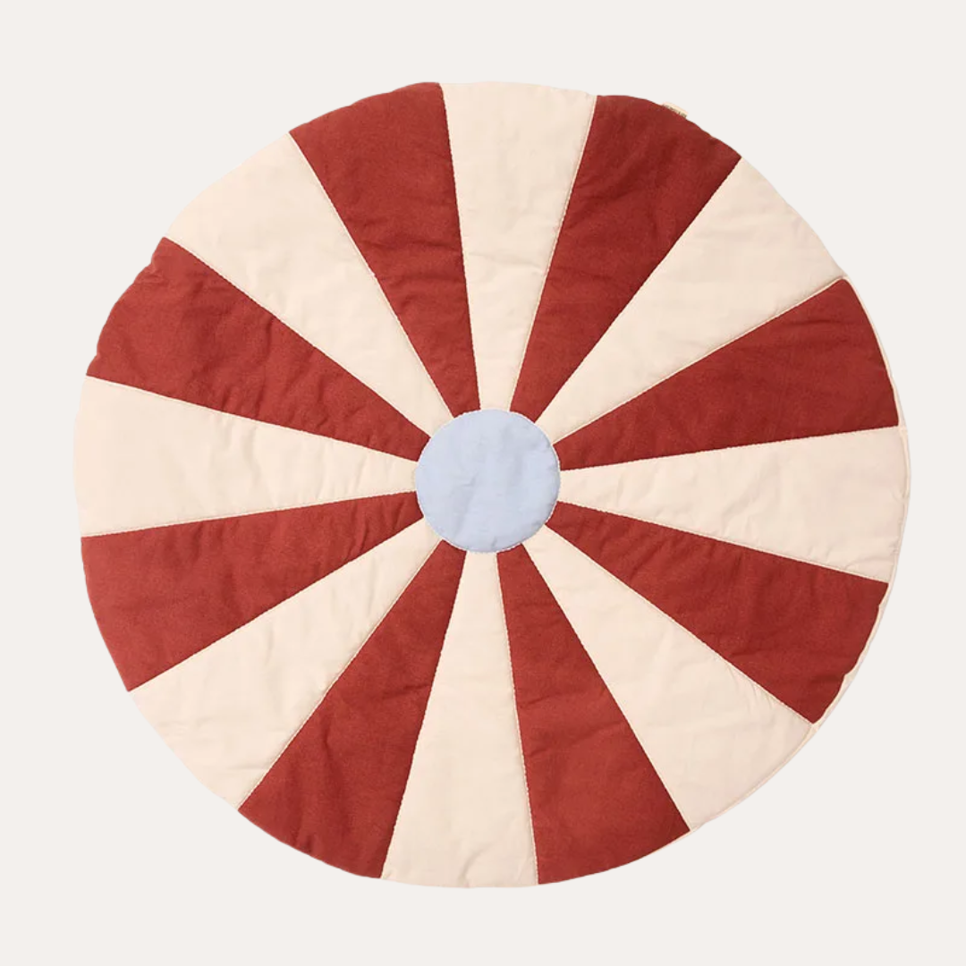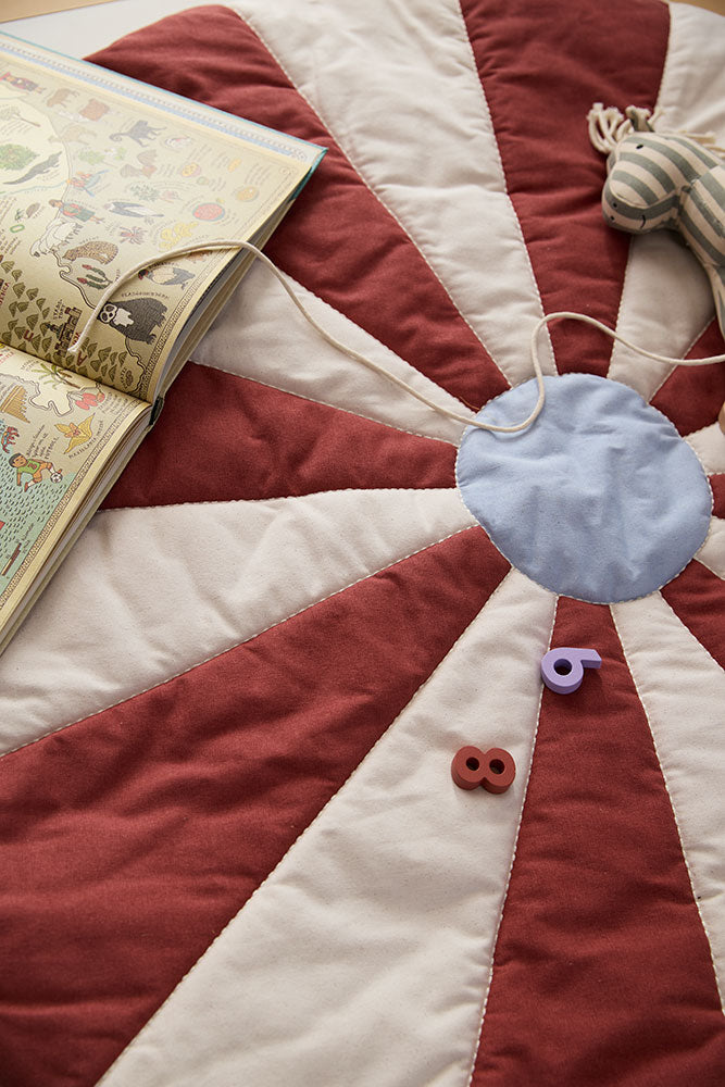 Transform any space into a playful circus retreat with this reversible play mat. Featuring bold graphic stripes on one side and calming off-white on the reverse, it's perfectly sized for the Tent Circus or works beautifully standalone. Quilted with recycled polyester and wrapped in soft, machine-washable cotton, this mat is ideal for playtime, tummy time, or cosy reading corners. OEKO-TEX certified for safety and peace of mind. Simply flip it to match your mood and décor.