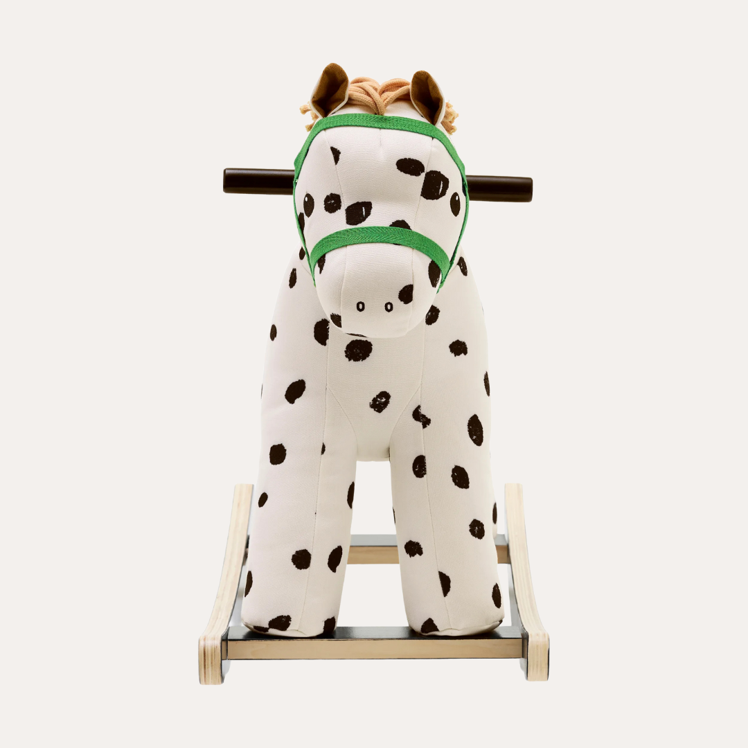 This whimsical rocker brings Pippi Longstocking's beloved horse to life with charming polka-dot fabric and sturdy FSC-certified wood construction.