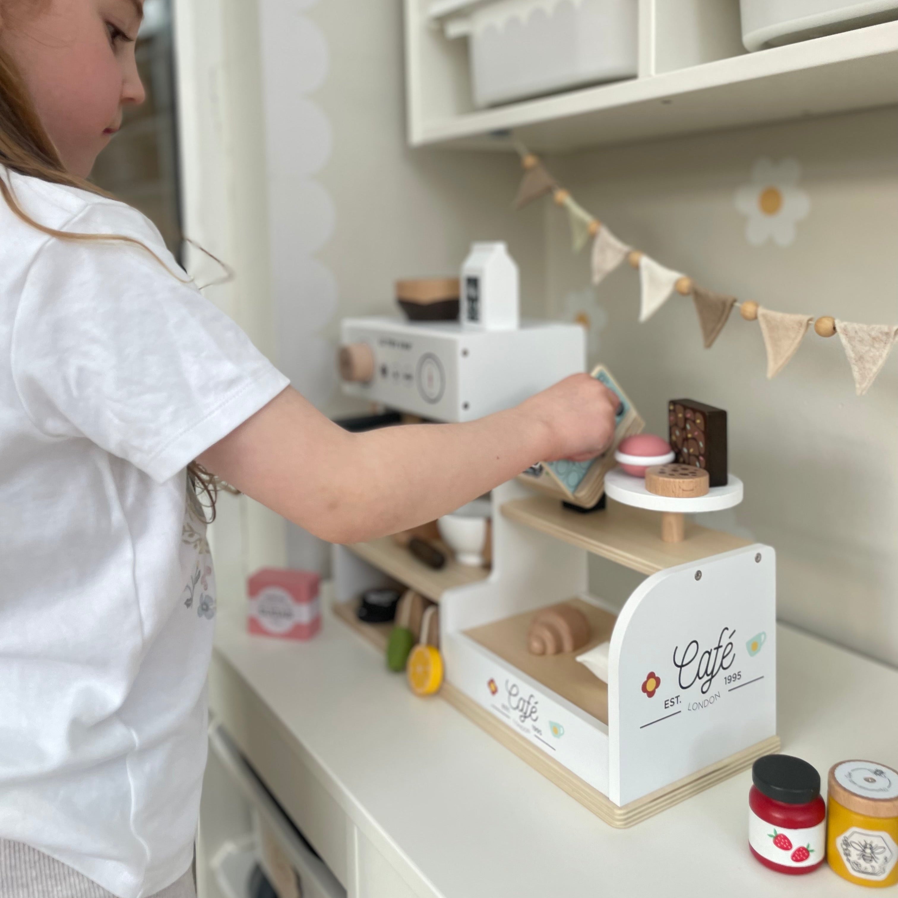 Little baristas can serve up fun with this Tabletop Café Playset. The bean-to-cup coffee machine features a milk frother, removable coffee filter and reversible coffee pods (coffee art on one side, beans on the other) for a realistic café experience. The set includes a food display area, cake stand, chalkboard tablet till and 17 accessories. A stamp-style loyalty card adds an extra touch of interactive fun. It’s the perfect addition for encouraging creative storytelling and social play.