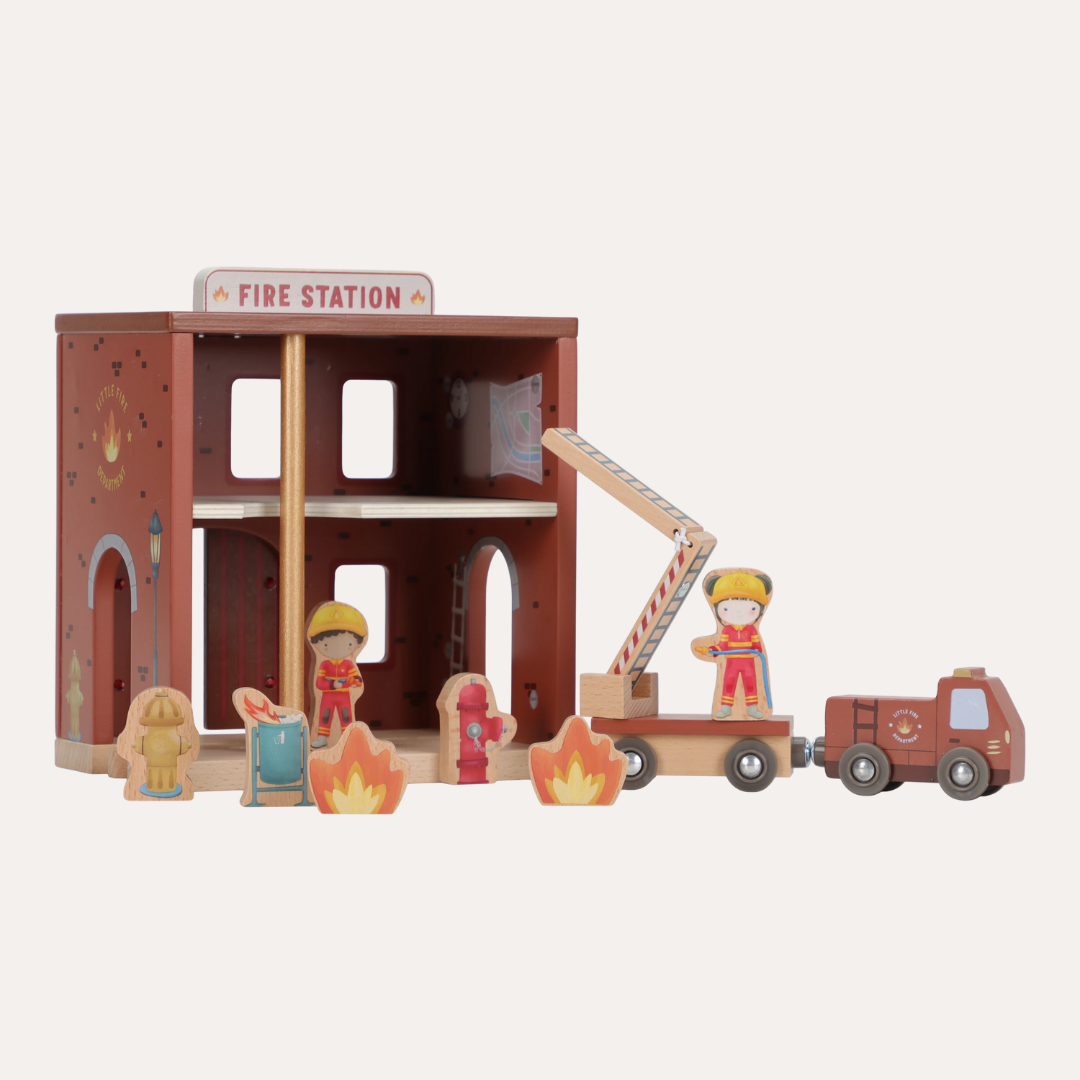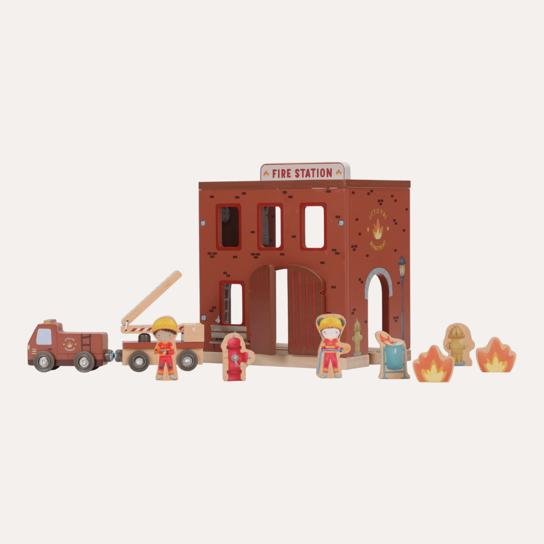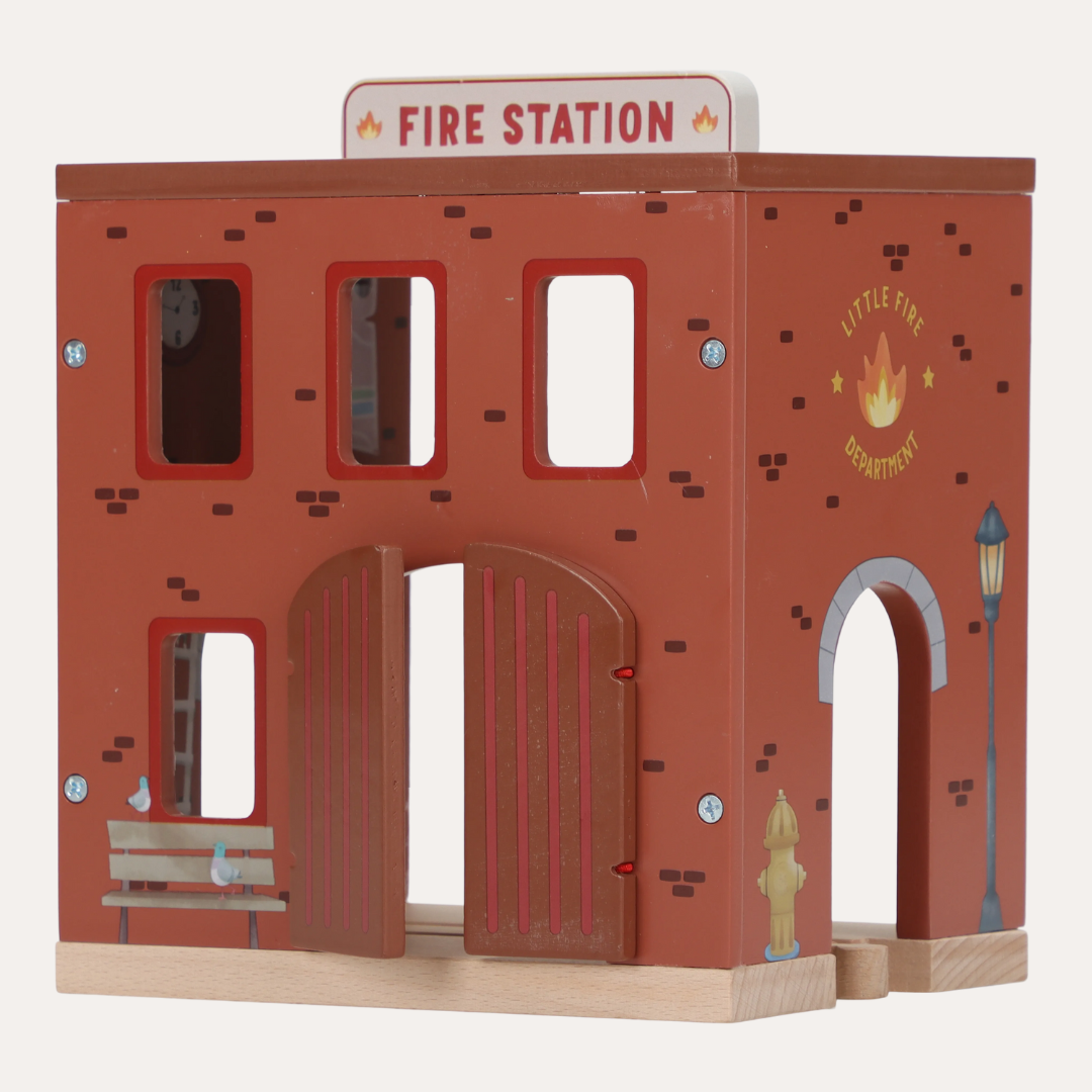 Transform your child's playtime into thrilling rescue adventures with the Fire Station FSC. This charming wooden set features interactive elements like sliding fire poles and doors that open to reveal surprises inside. Complete with a ready-to-roll fire truck, brave firefighters, and flaming props, young heroes can stage their own emergency responses and heroic saves. The detailed design sparks imaginative storytelling and endless entertainment. Combine it with the Little Dutch XL Wooden Train Track to expand the action and create an even bigger world of play.