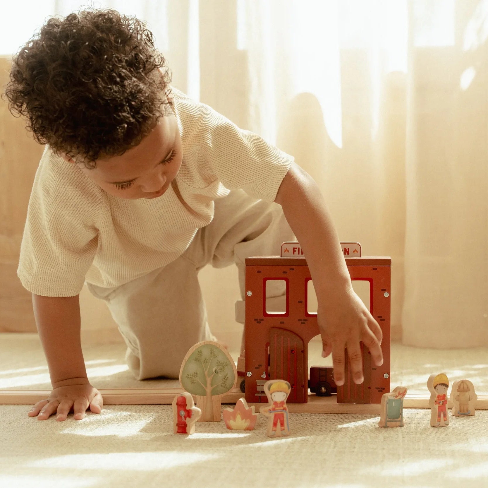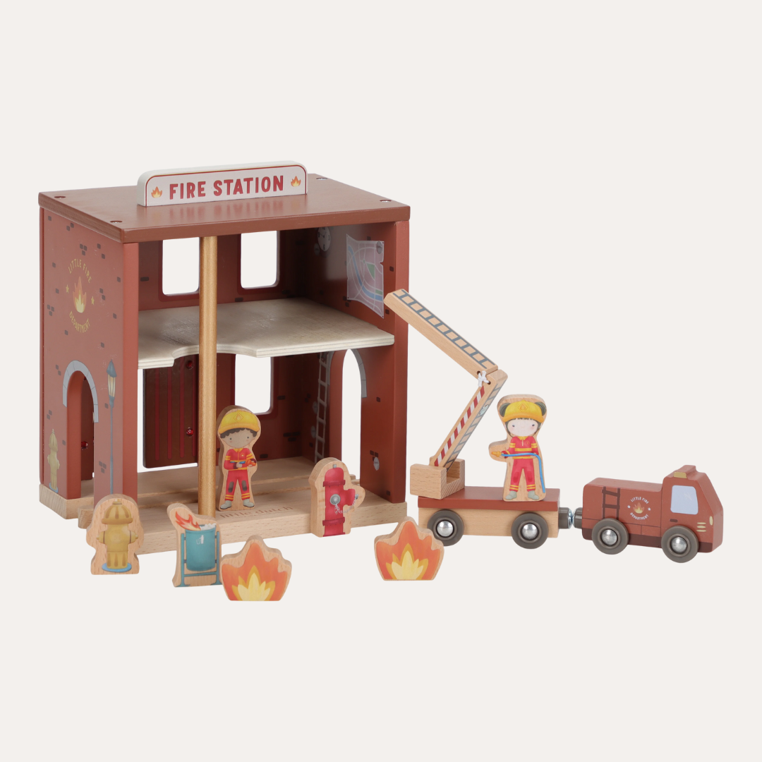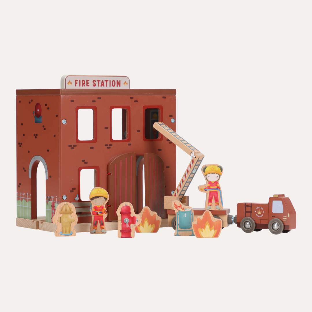 Transform your child's playtime into thrilling rescue adventures with the Fire Station FSC. This charming wooden set features interactive elements like sliding fire poles and doors that open to reveal surprises inside. Complete with a ready-to-roll fire truck, brave firefighters, and flaming props, young heroes can stage their own emergency responses and heroic saves. The detailed design sparks imaginative storytelling and endless entertainment. Combine it with the Little Dutch XL Wooden Train Track to expand the action and create an even bigger world of play.
