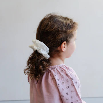 Introducing a gorgeous neutral broderie anglaise fabric scrunchie. oversized and perfect for the new season! Each pack contains one stretchy, durable scrunchie measuring approximately 12cm wide. Warning: Not suitable for children under 36 months.