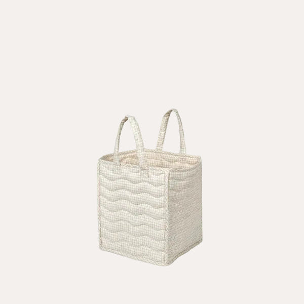 Soft and stylish storage basket with decorative wave quilting and large handles—perfectly sized for little hands to carry. Ideal for quickly tidying up toys, laundry, or everyday essentials.