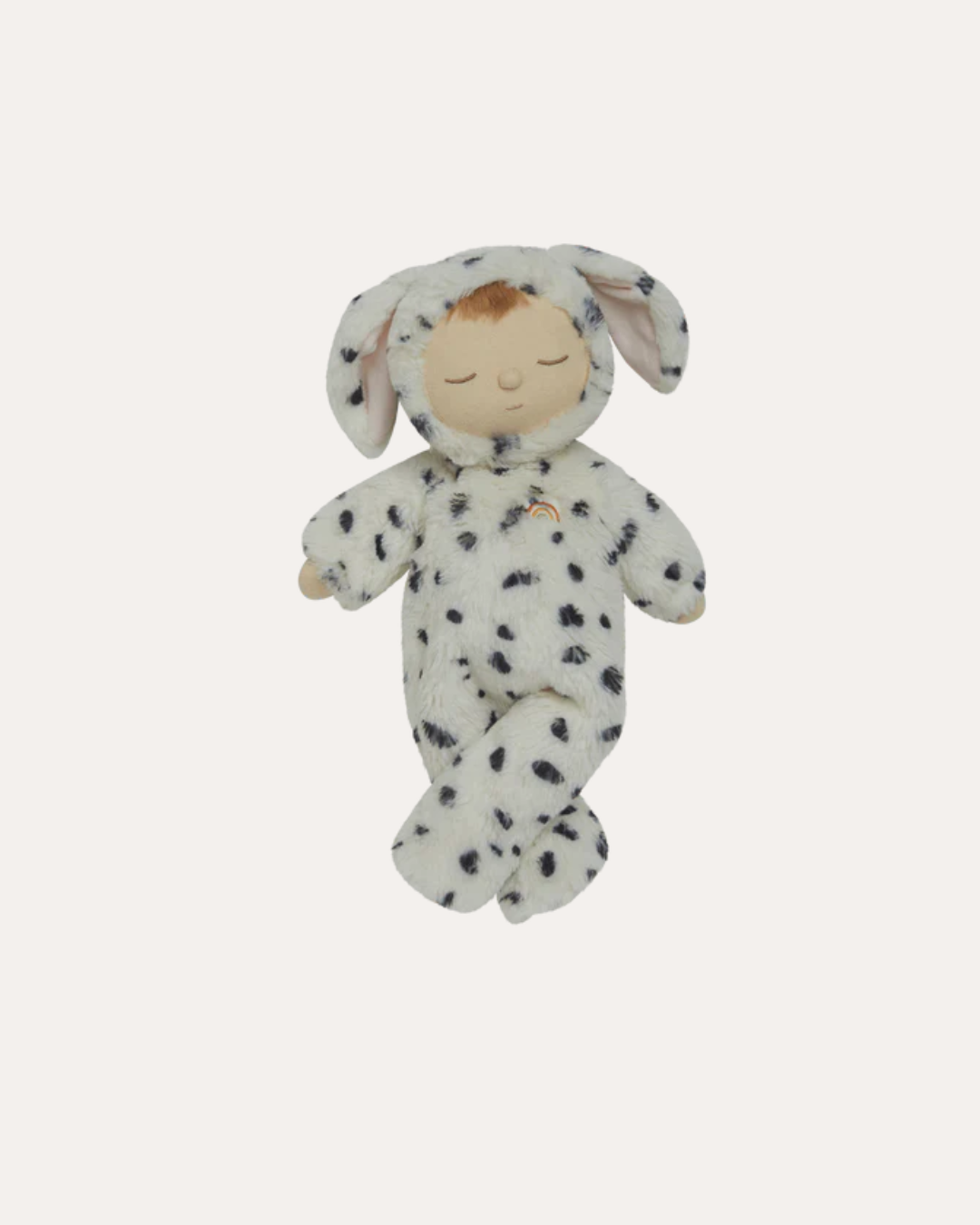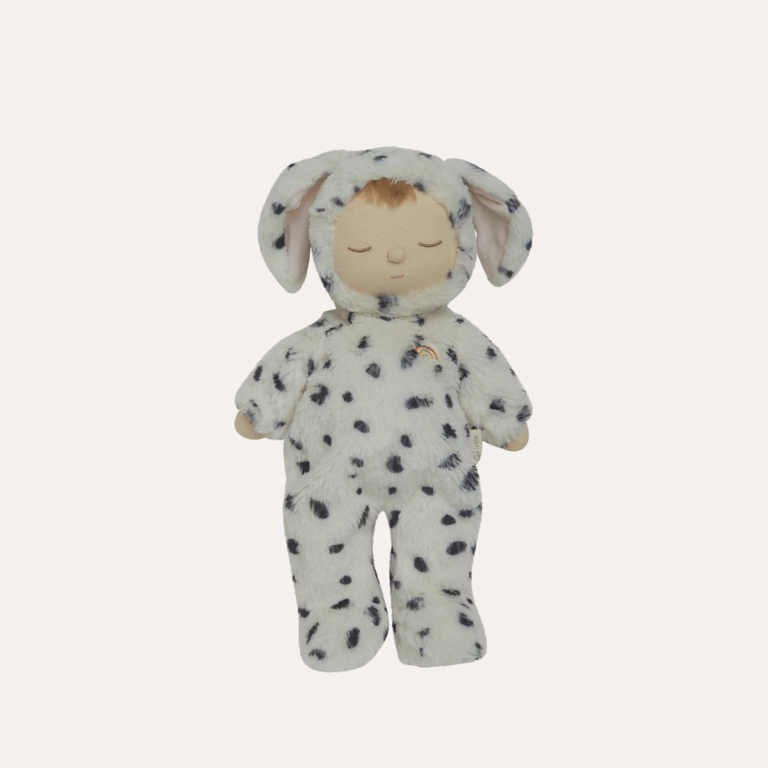 Domino is a zig-zag of pure energy who spots the fun in everything. This spotted pup has a nose for snacks, a talent for hide-and-seek (though staying hidden isn't their strong suit), and a questionable history of befriending bees. Soft, cuddly, and full of mischief, Domino is ready for adventures big and small. Perfect for little ones who love a companion with personality to spare.