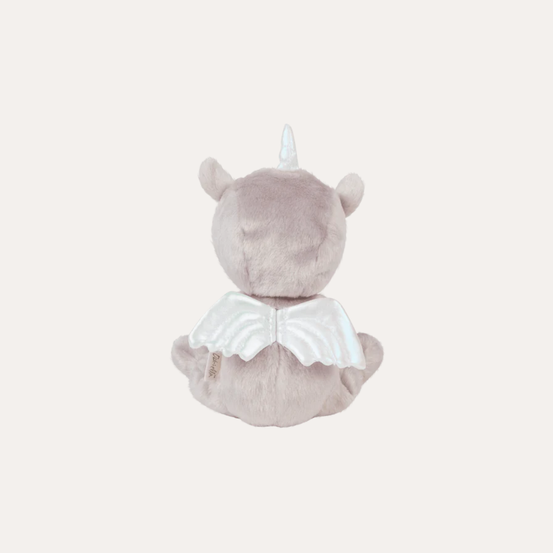 Meet Uma, a lilac-purple Dinky Dinkum bursting with magical charm! Featuring soft curly hair, a fluffy hood crowned with a shimmering silver horn, and adorable purple ears, Uma is perfectly sized for little hands and big imaginations. This enchanting unicorn friend invites children to gallop through cloud-filled adventures or settle in for cosy cuddles. With a huggable body and whimsical details, Uma sprinkles pure magic into every playtime moment.