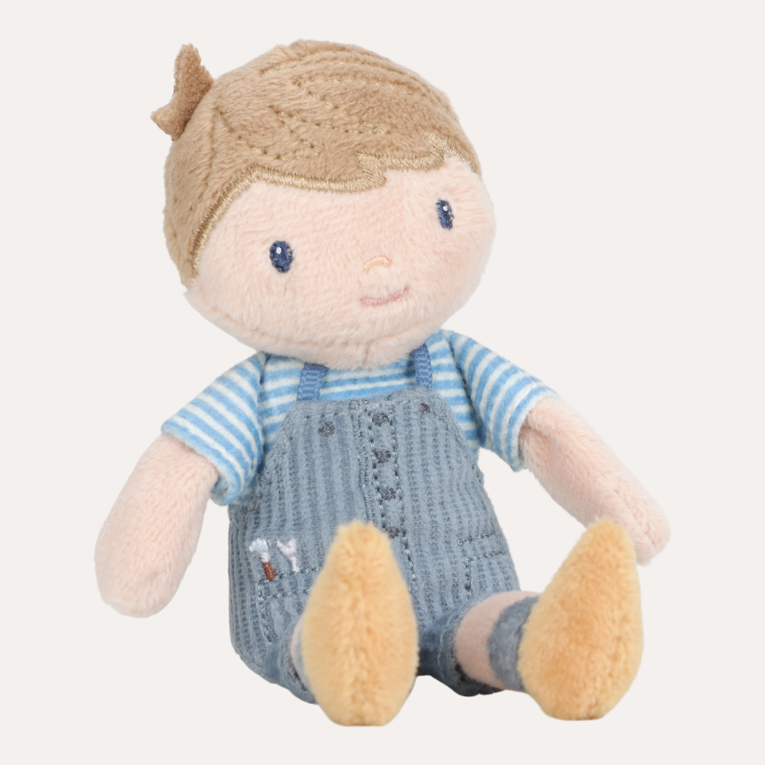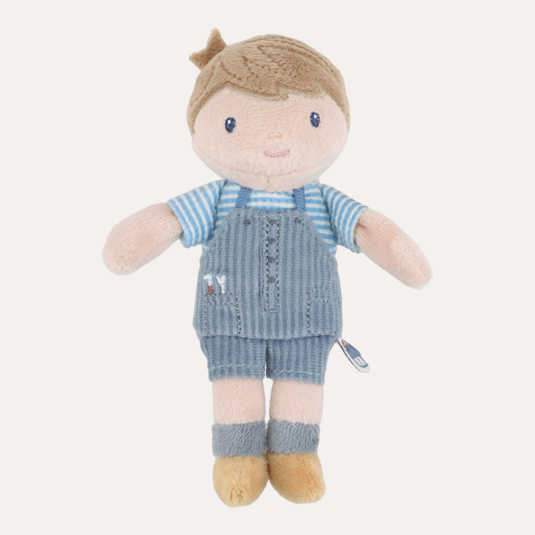 Say hello to Jim, the adorable 10cm doll who's always up for playtime. Dressed in charming overalls and a striped shirt, this soft-bodied friend is ready to become a beloved companion. Whether he's joining tea parties, offering comfort at naptime, or exploring imaginary worlds, Jim fits perfectly into tiny hands and big adventures alike. His practical carry box with cord means your little one's best mate is never left behind.