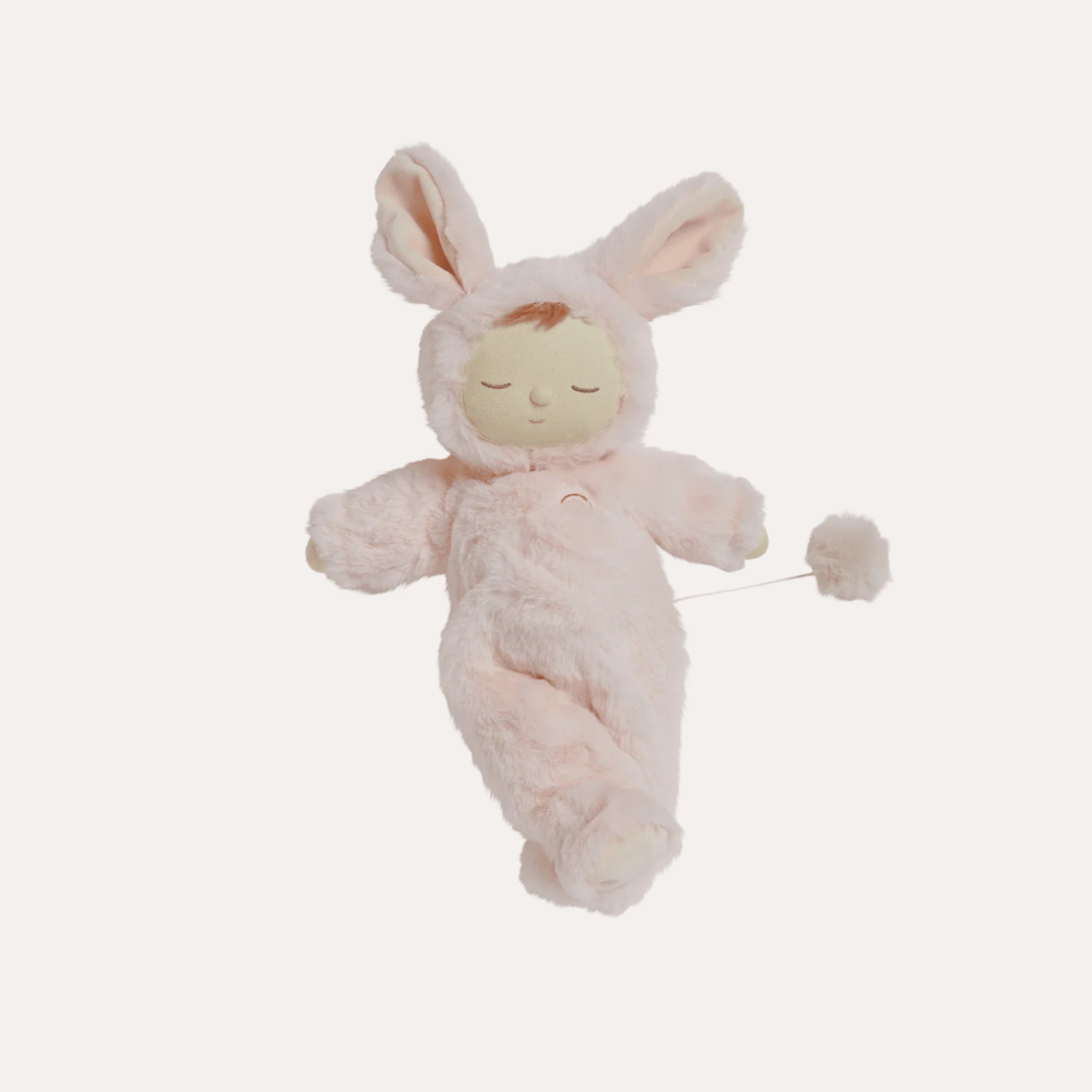 The Lullaby Cozy Dinkum Bunny Moppet in Pink is the perfect bedtime buddy, playing a gentle instrumental version of "You Are My Sunshine" when you pull its fluffy tail. Soft and cuddly, this sweet bunny is made for comforting snuggles and peaceful moments. Its cozy pink colour and soothing lullaby add a magical touch to any bedtime or quiet playtime routine.