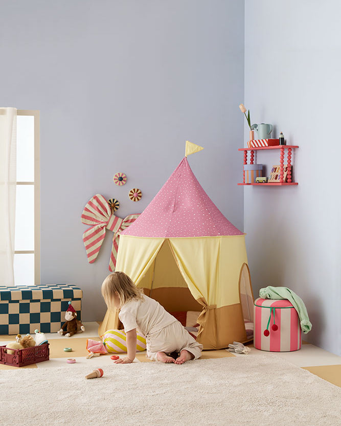 A fun filled sanctuary where imagination takes centre stage. This versatile play tent transforms any room into an adventure zone, complete with charming star details and bunting that spark creative play.