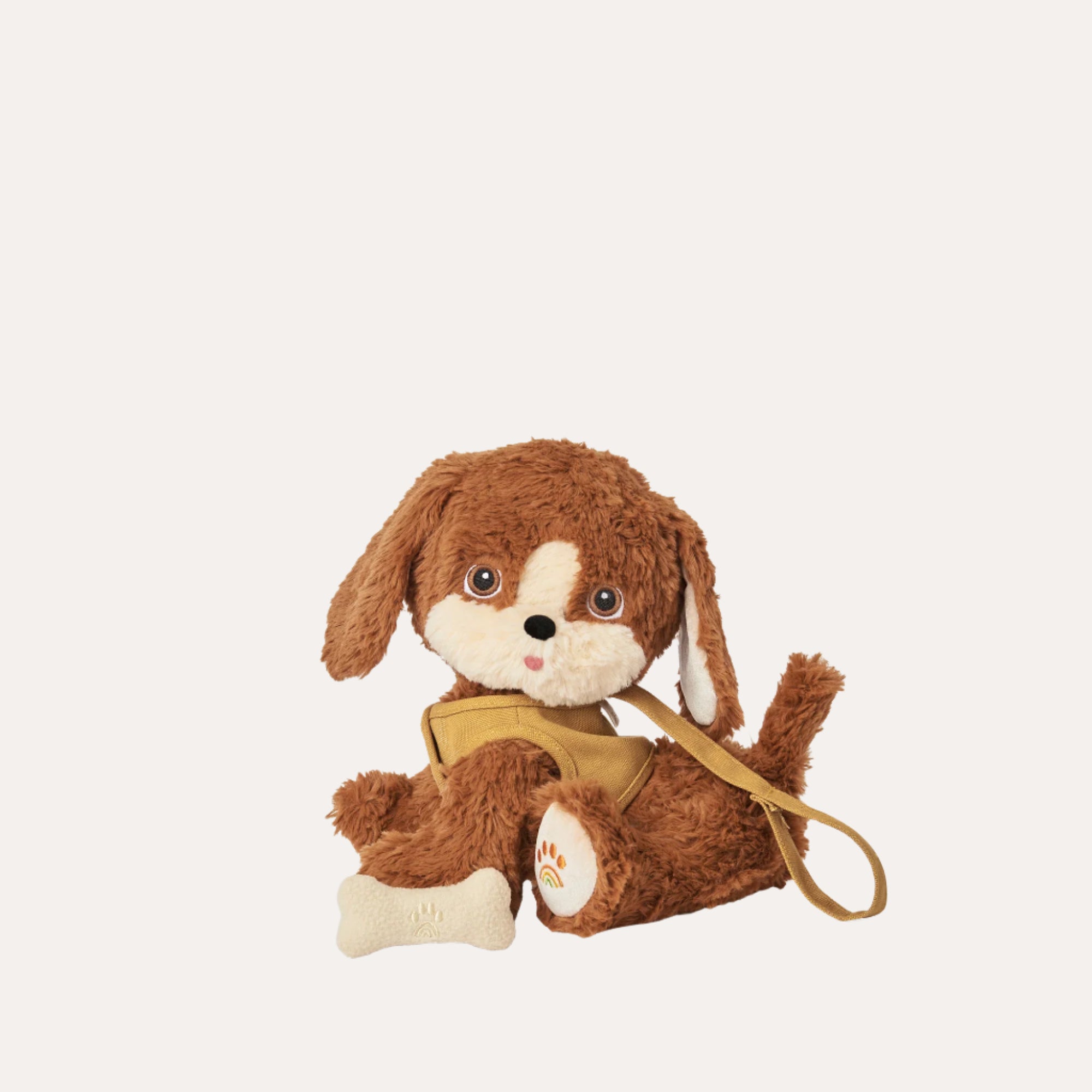 Meet Buddy, the lovable Dinkum Dog who’s crazy about bones! This snuggly pup is ready for a home filled with love, tail wags, and plenty of Dinkum Doll Walks. Made from soft, 100% recycled plush with velvety ears perfect for nuzzling, Buddy is fully poseable—able to stand, sit, and lie down. His head moves and features an embroidered sweet doggy face, with a rainbow surprise on one paw. Buddy carries his bone easily thanks to a magnetic mouth and matching magnetic bone accessory. He arrives in a beautiful recyclable cardboard home, complete with a dog adoption certificate, bone, canvas harness, and lead.