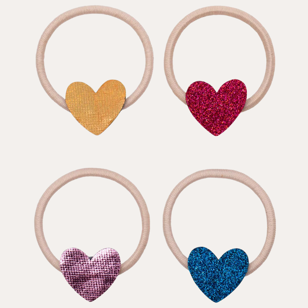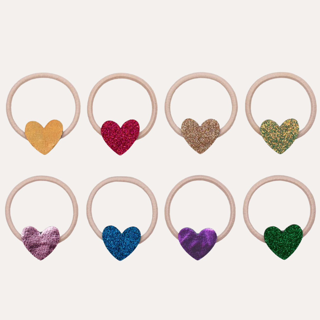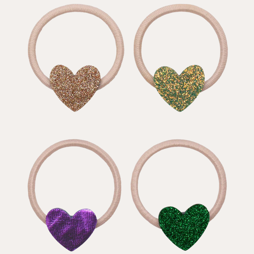 • Hearts crafted from a mix of soft metallic and glitter fabrics