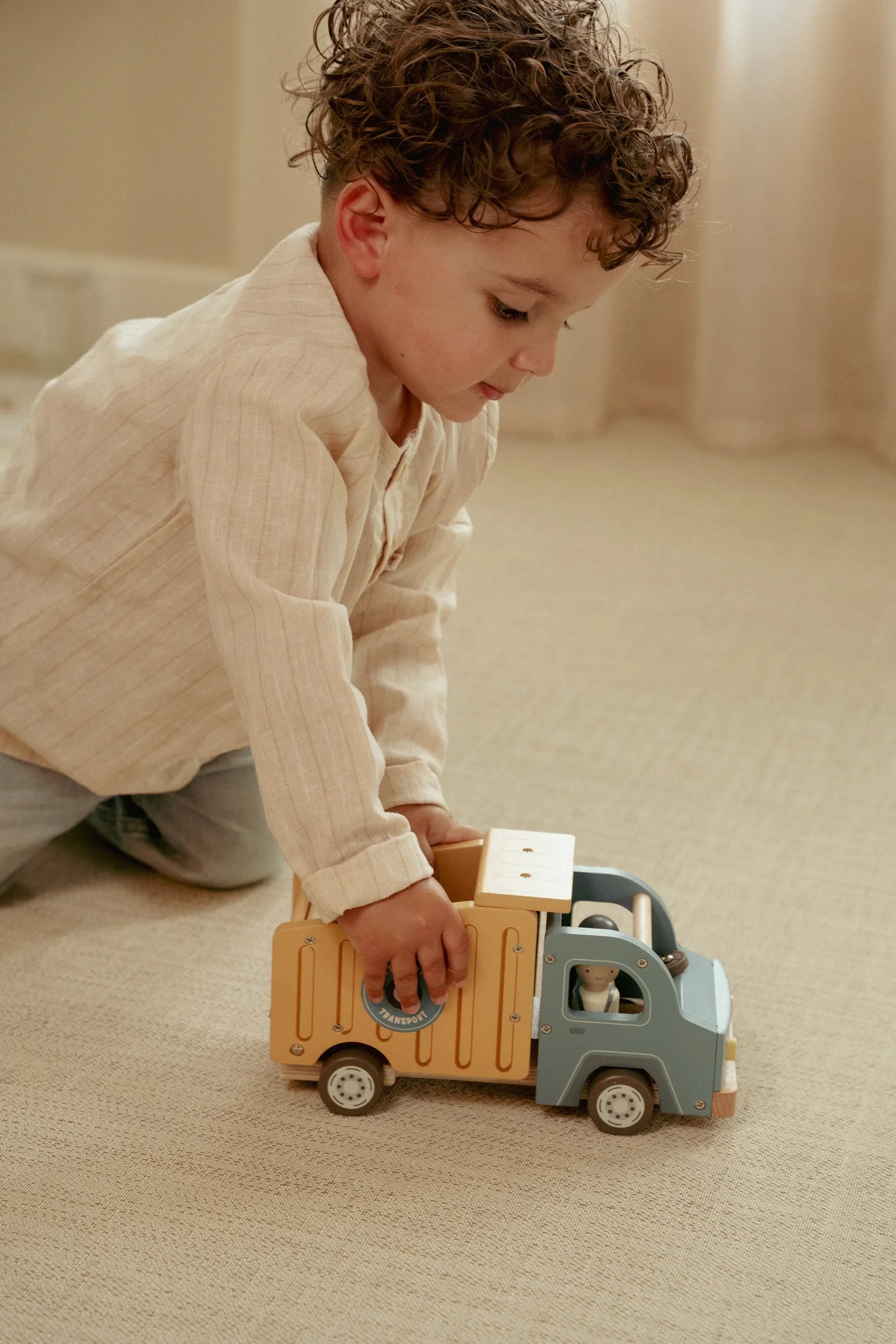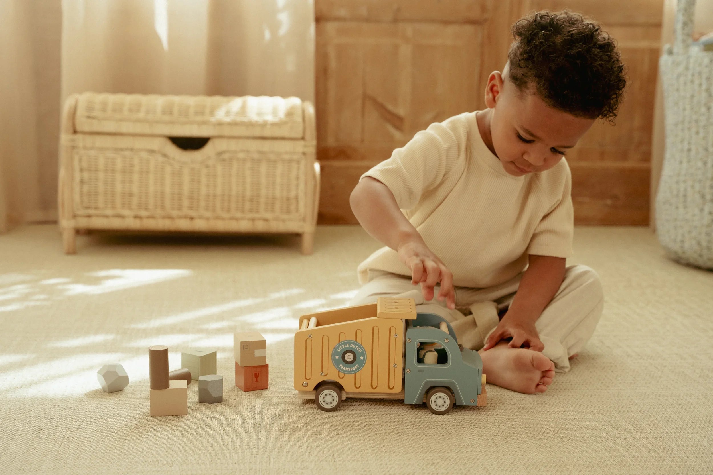 Discover the art of imaginative play with Wooden Bin Lorry by Little Dutch - a beautifully crafted role-play toy that brings construction sites to life. Watch as the authentic tipping bed tilts and empties, just like a real refuse truck.
