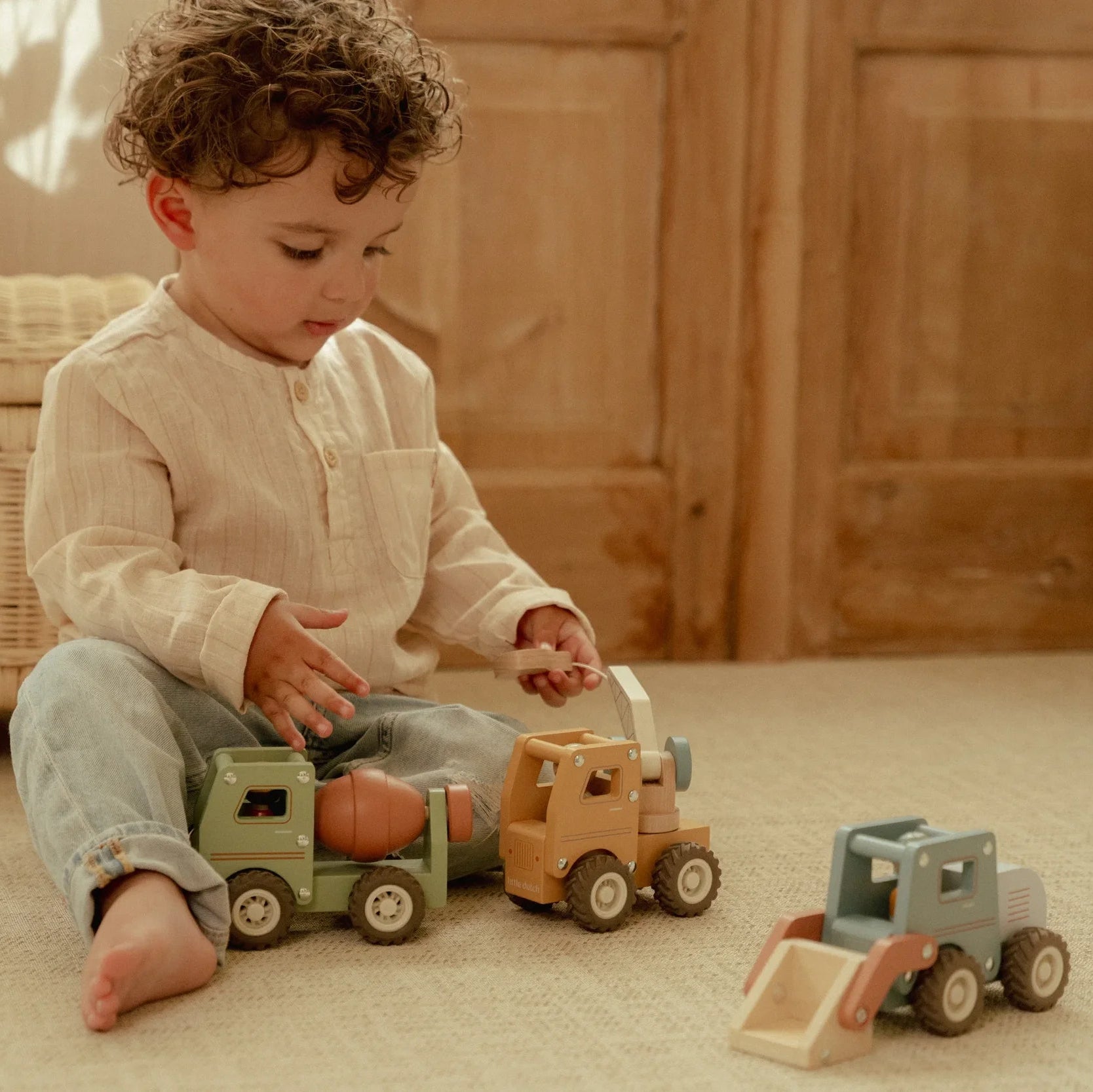 Each vehicle features smooth rubber wheels for silent play, sturdy FSC wood construction, and open designs perfect for little hands. Mix and match with other wooden sets to create a complete city or construction site, sparking hours of imaginative adventures indoors and out.