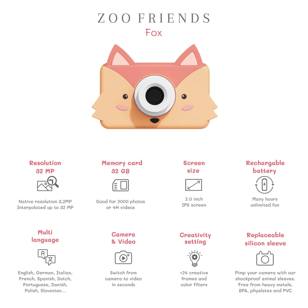 Capture your little one’s adventures with the Zoo Friends - Giraffe camera, designed especially for kids aged 3 and up. Its simple controls and small size make it perfect for tiny hands, while the charming replaceable bear-shaped silicone sleeve adds a fun, cuddly touch. Encourage creativity and storytelling through every snapshot with this playful companion that turns every photo into a joyful memory.