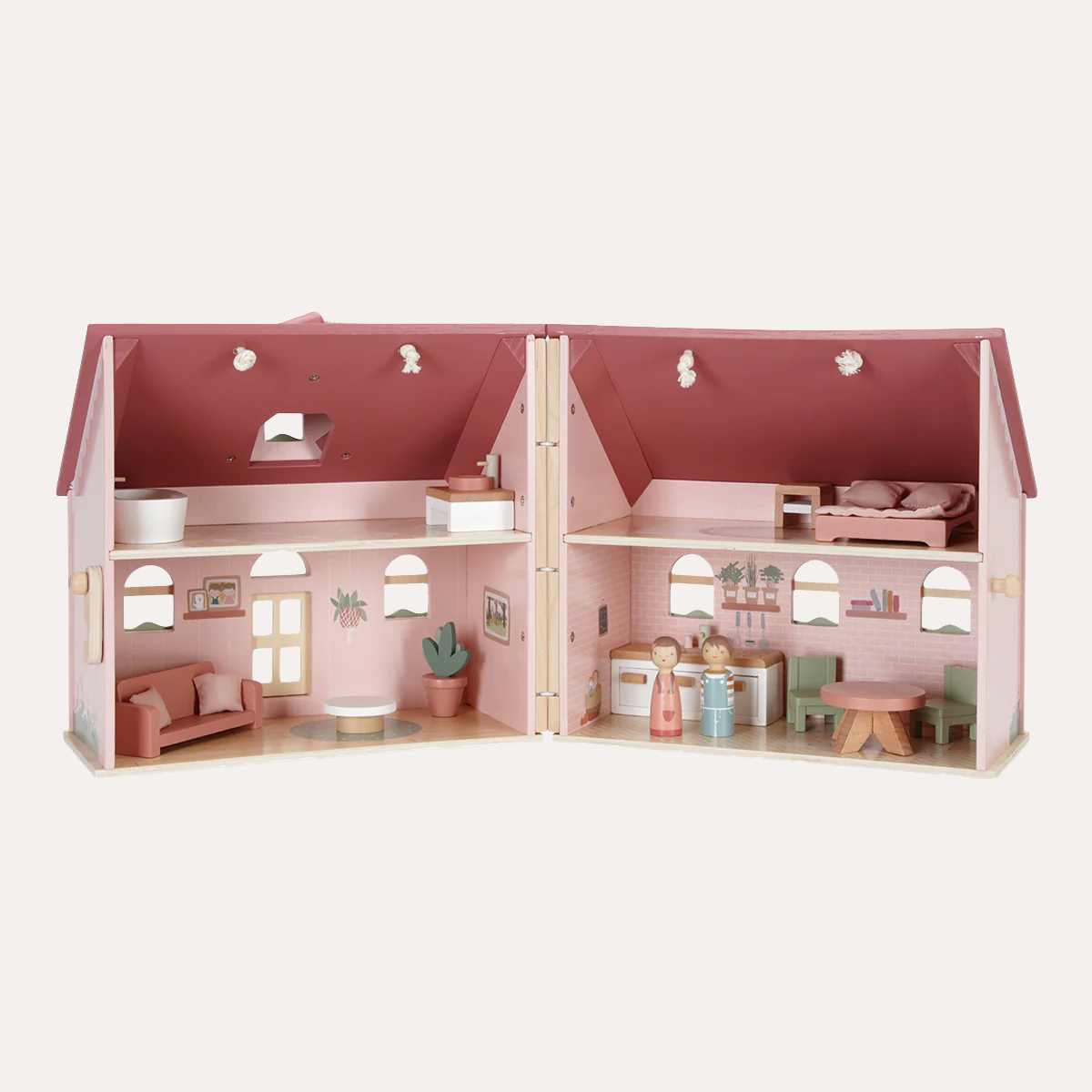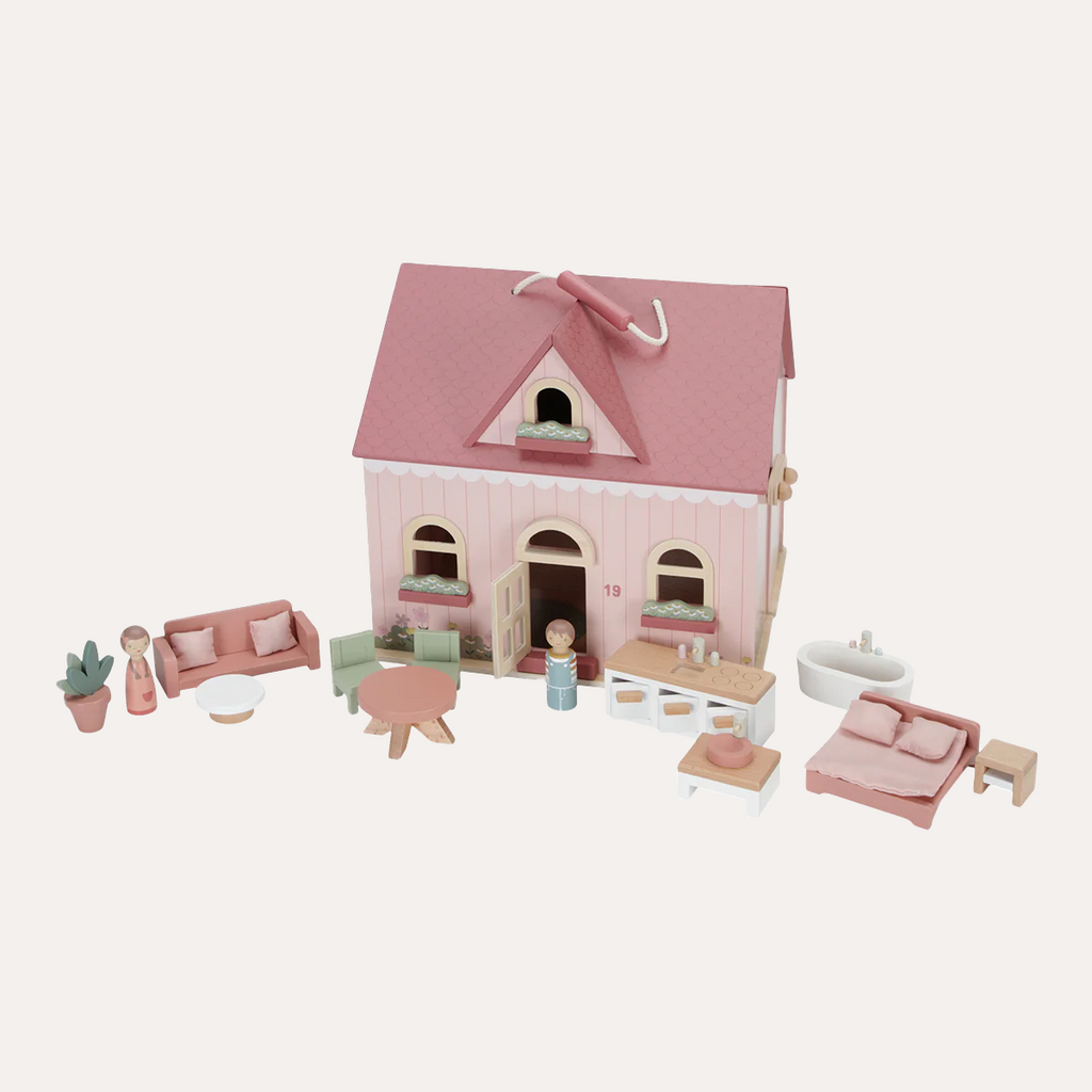 This pastel-pink beauty opens up to reveal a fully furnished, cozy home ready for play. With miniature furniture and wooden figures included, it’s perfect for on-the-go adventures and endless imaginative scenarios.