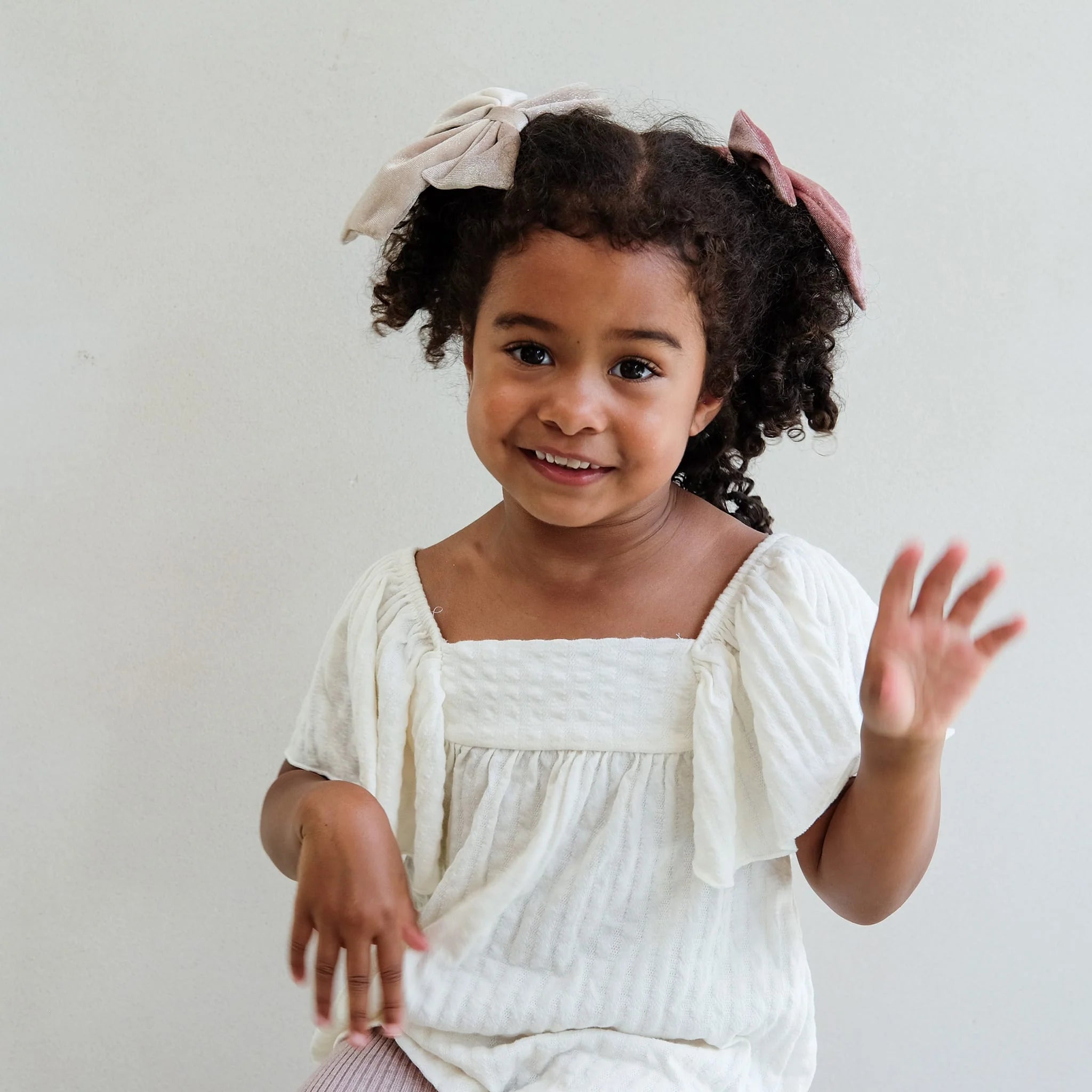 Elevate playtime style with this charming duo of oversized velvet bows in soft pink and cream. Each bow delivers a touch of elegance to any outfit, whether you're dressing up for special occasions or adding flair to everyday wear. Perfect for gatherings, holiday celebrations, and year-round adventures, these sumptuous bows bring warmth and personality to every ensemble.