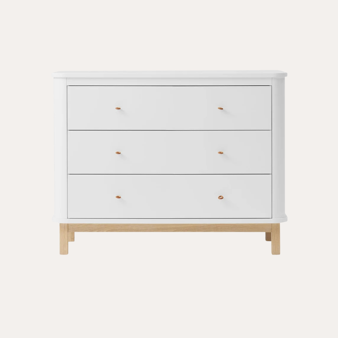 The Wood dresser delights with its softly rounded edges, adding a cozy and natural vibe to any nursery.