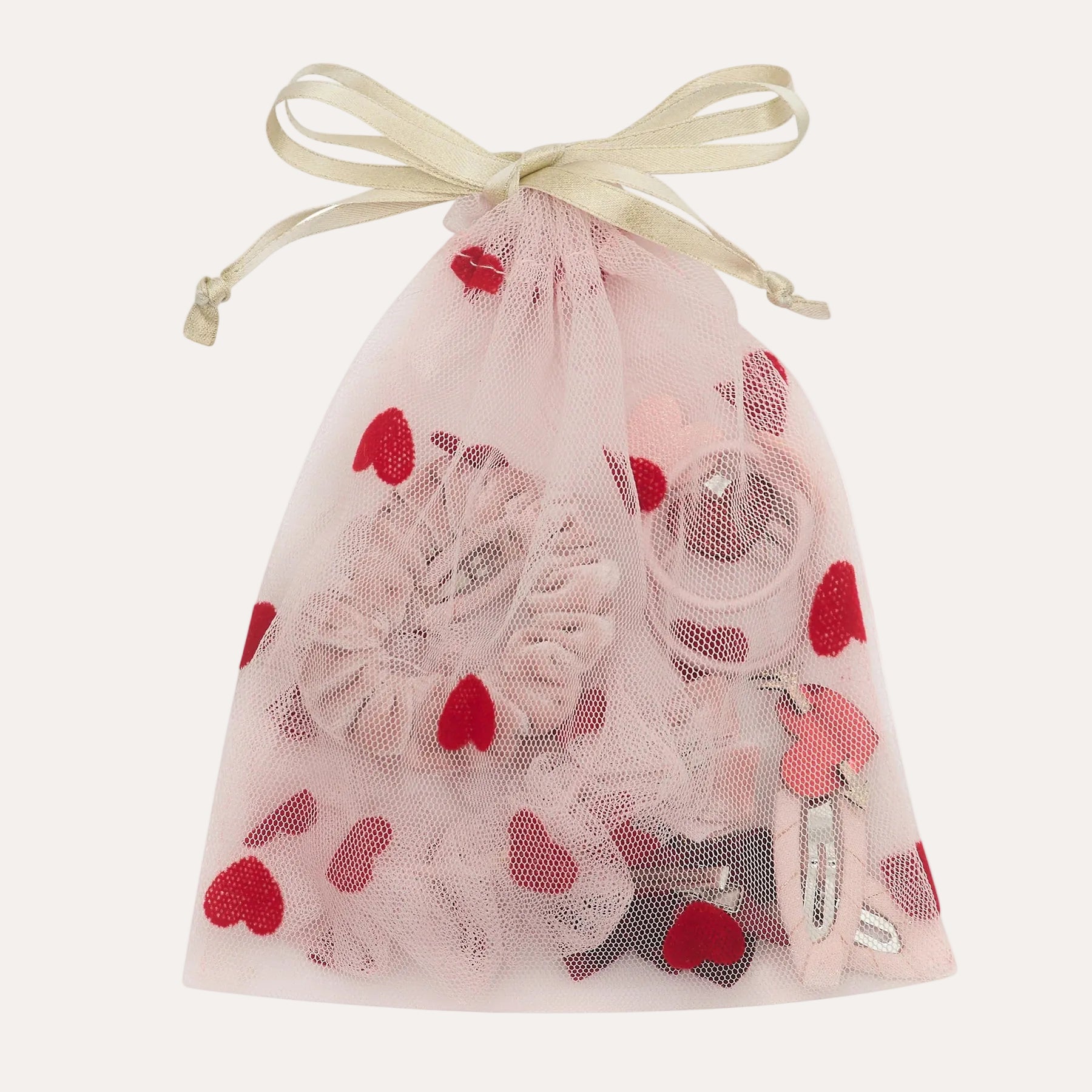 Wrap up a bundle of joy with our delightful Heart Pouch—a charming gift that keeps on giving! Tied with a silky satin ribbon and brimming with heart-themed treasures, this pouch is perfect for storing accessories year-round. A sweet way to show your little one just how much you care.