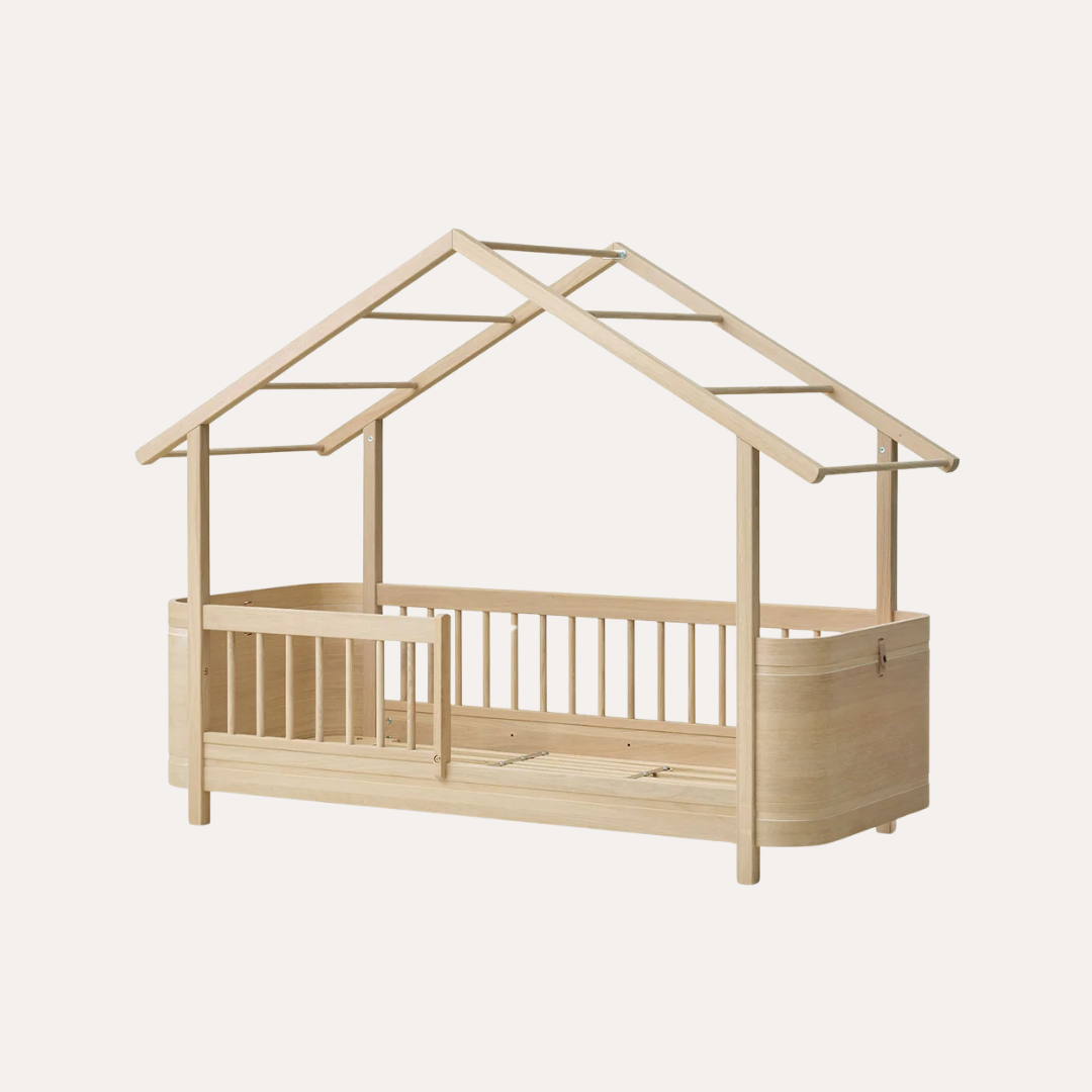 Part of the convertible Wood Mini+ series, this oak bed adapts as your child does, making it a thoughtful investment in both comfort and independence.