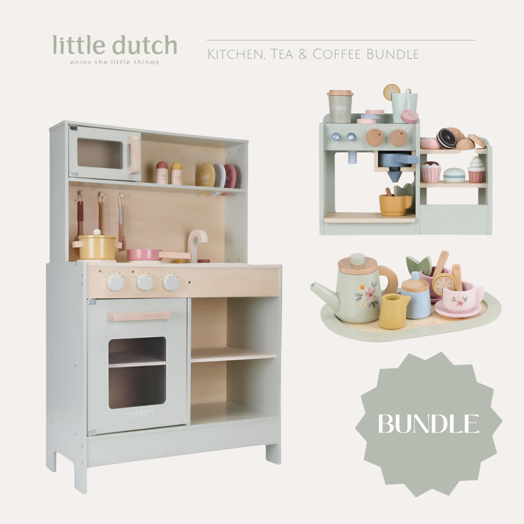 Mint Play Kitchen, Coffee Corner & Tea Set Bundle