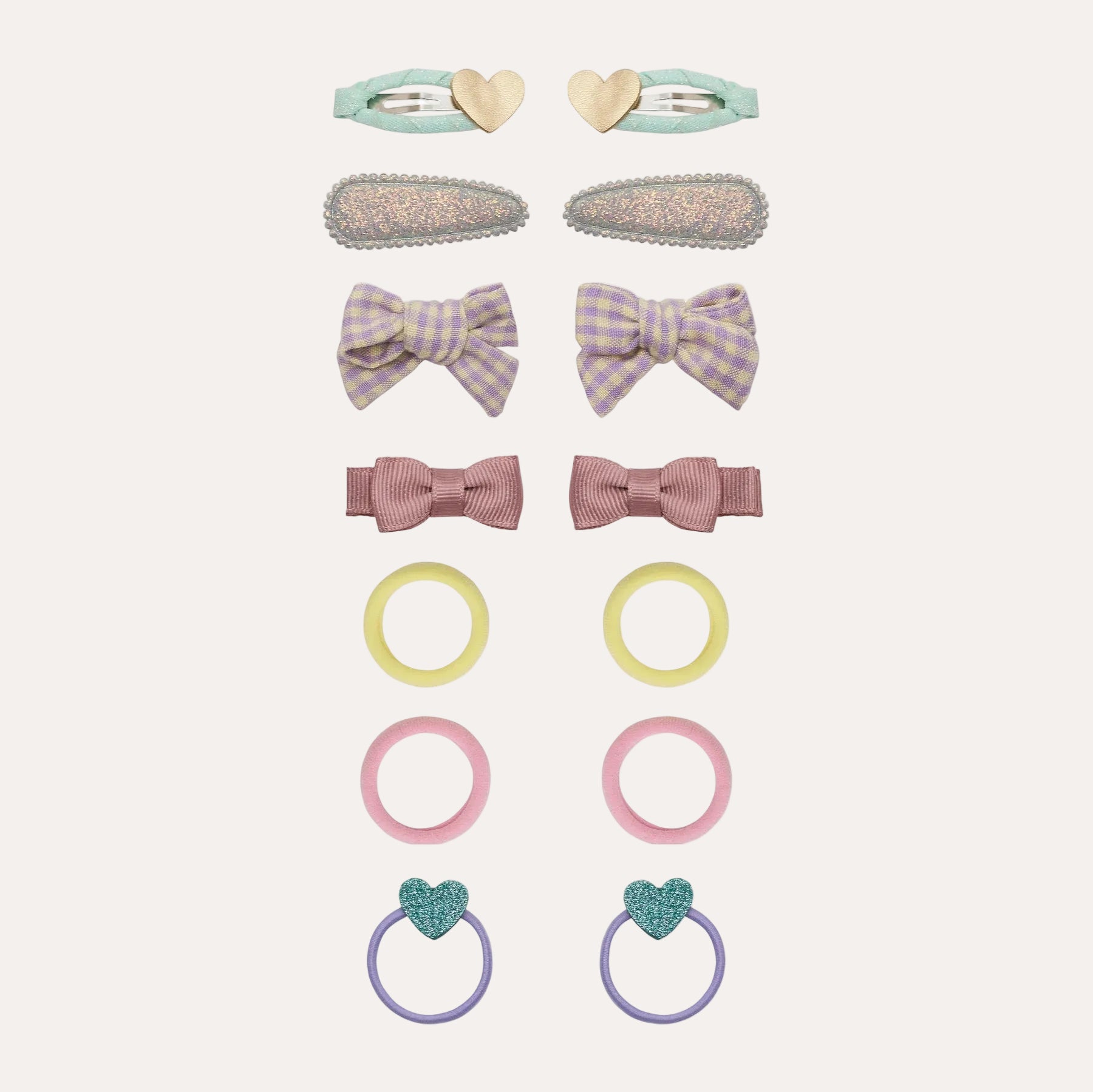 Discover seven delightful hair accessories in soft pastel shades—the perfect introduction to personal style! Each pair features charming designs that complement any outfit, giving little ones the freedom to express themselves. From gentle clips to sweet bows, this starter collection offers variety without overwhelming choices. Ideal for building confidence and exploring new looks, one adorable accessory at a time.
