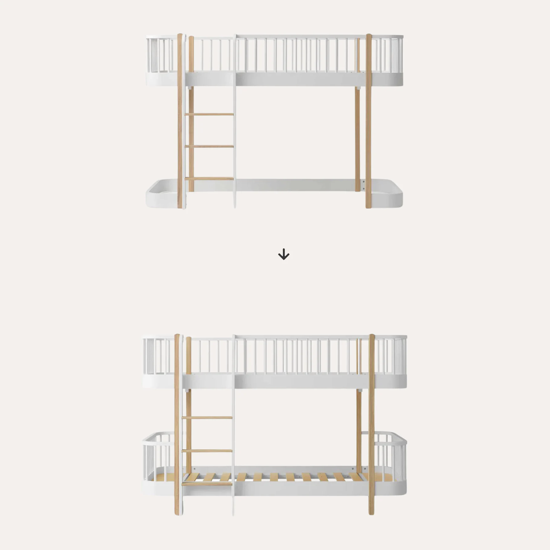 Original Low Loft Bed to Low Bunk Bed, White/Oak