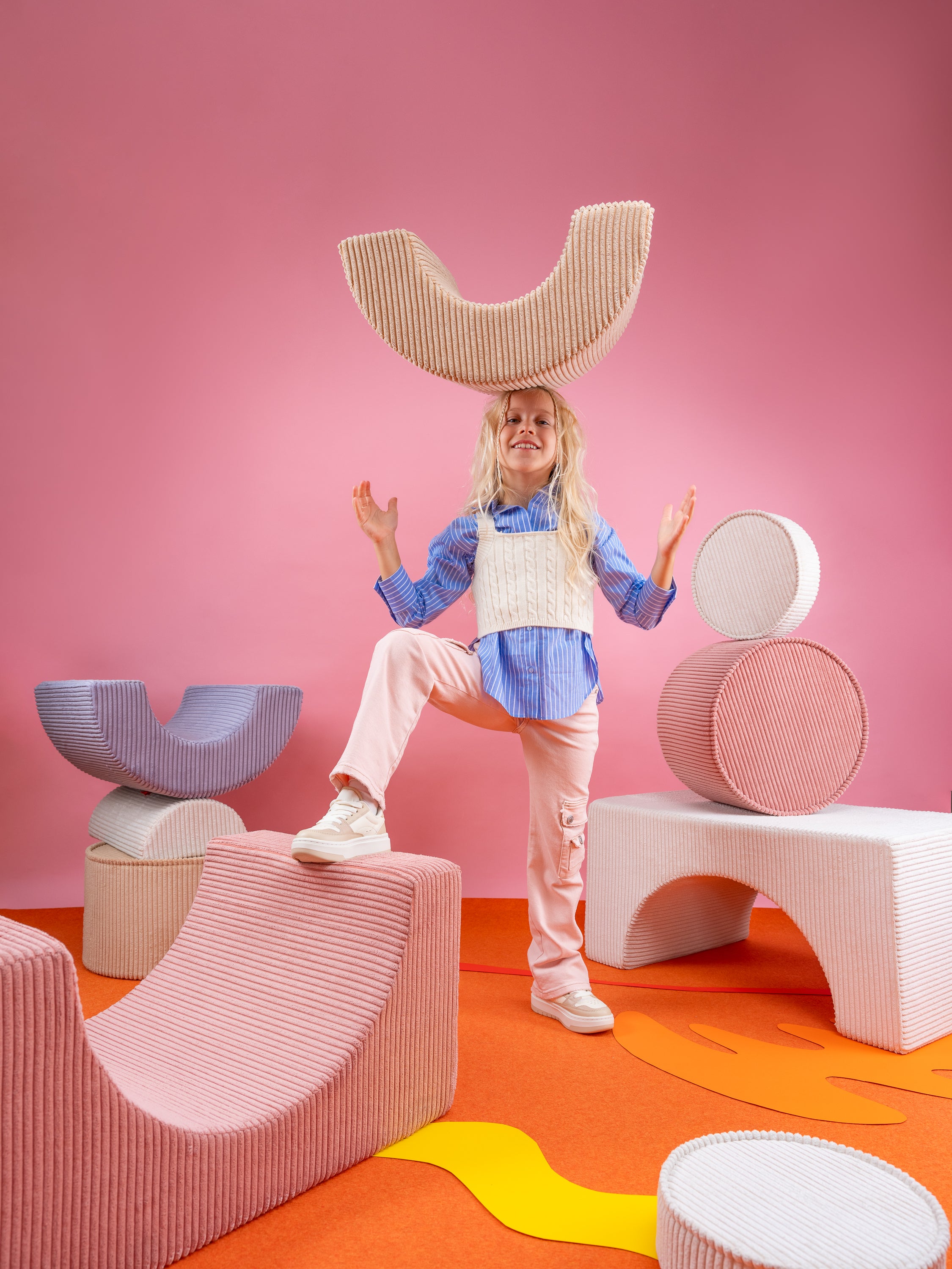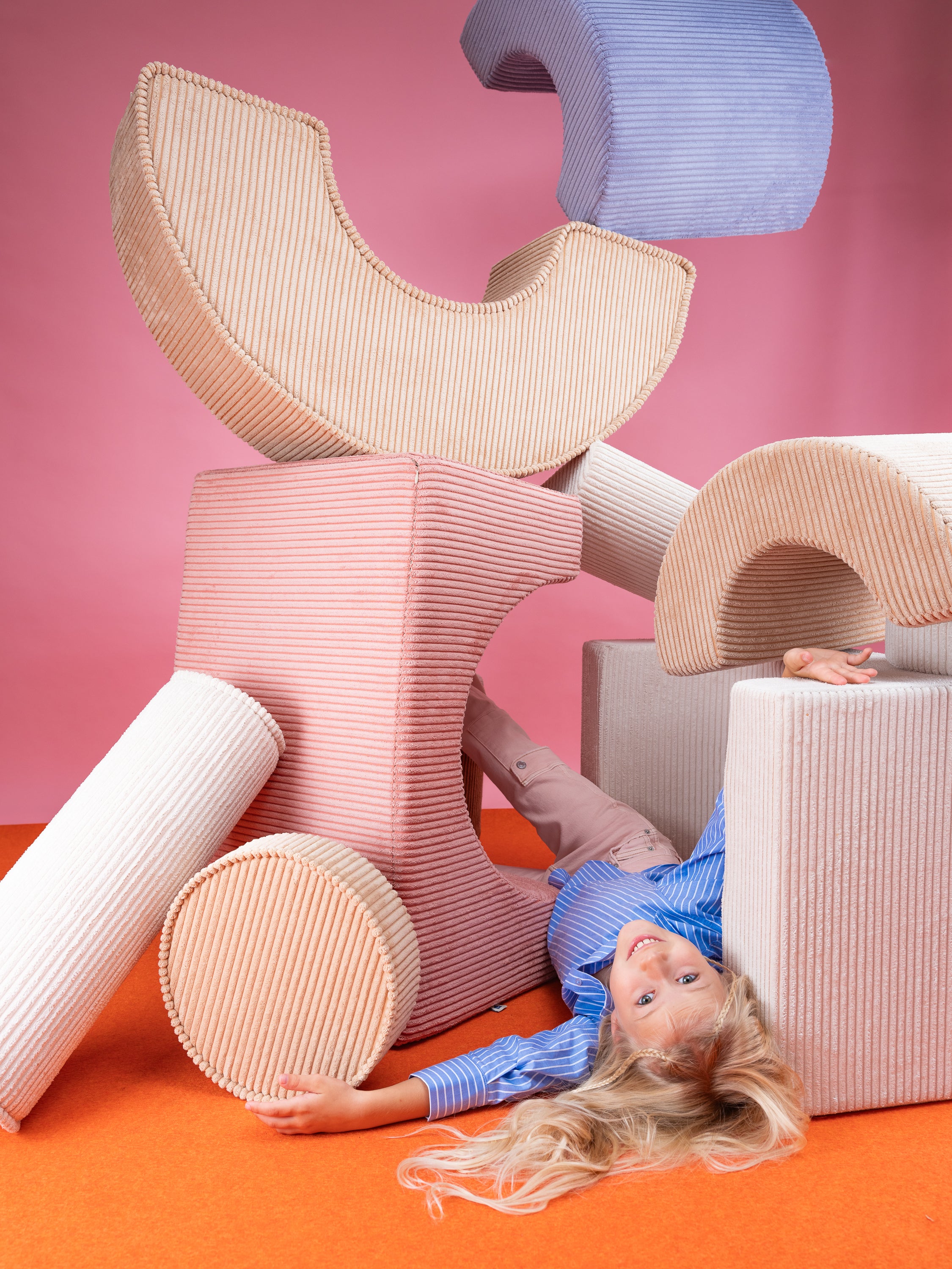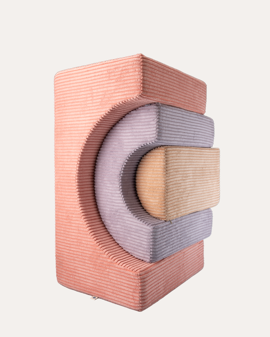 The Wigiwama Playset is a flexible, soft play set featuring three uniquely shaped pieces that open the door to endless imaginative fun. Kids can stack, build, or transform these pieces into a comfy chair, a playful table, stepping stones, or a snug little fort for adventurous play.