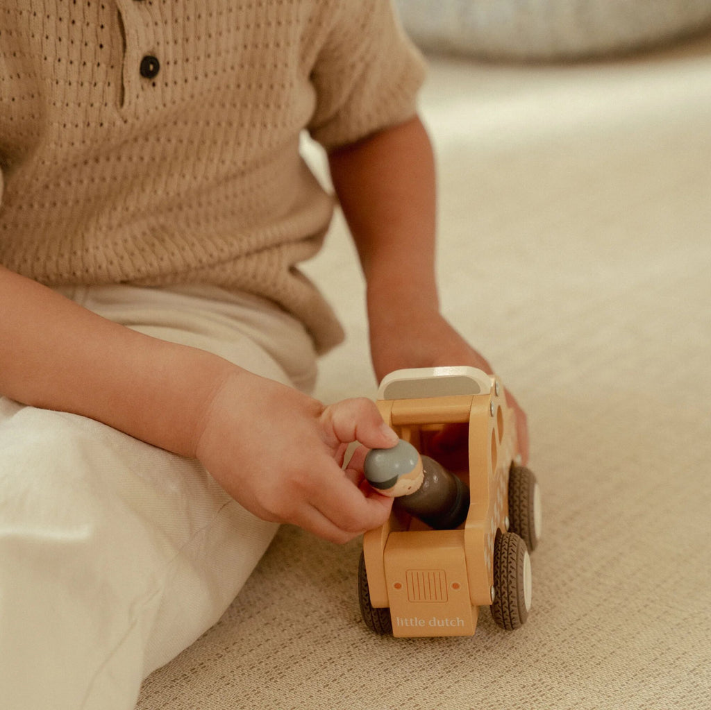 This charming wooden taxi is ready to take you on a fun ride through the bustling city! With smooth rubber wheels for a quiet glide and a friendly driver behind the wheel, it’s perfect for imaginative adventures. Stop by the train station or head straight home—wherever you choose, this timeless toy brings endless play and safe journeys. Hop in and start your next exciting trip today!