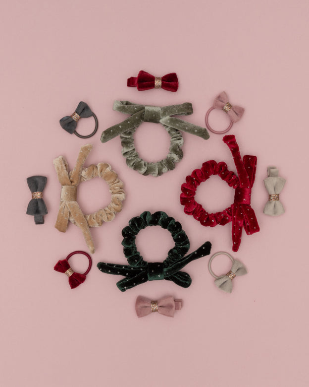 Wrap up the festive season in style with our sumptuous velvet scrunchies! This pack of four features a luxurious Christmas-inspired colour palette that'll keep little ponies looking merry all season long. Each scrunchie measures approximately 7cm in diameter, making them the perfect size for securing hair with a touch of holiday magic. Soft, stretchy, and bursting with festive charm—the ideal stocking filler or gift for any young hair enthusiast.